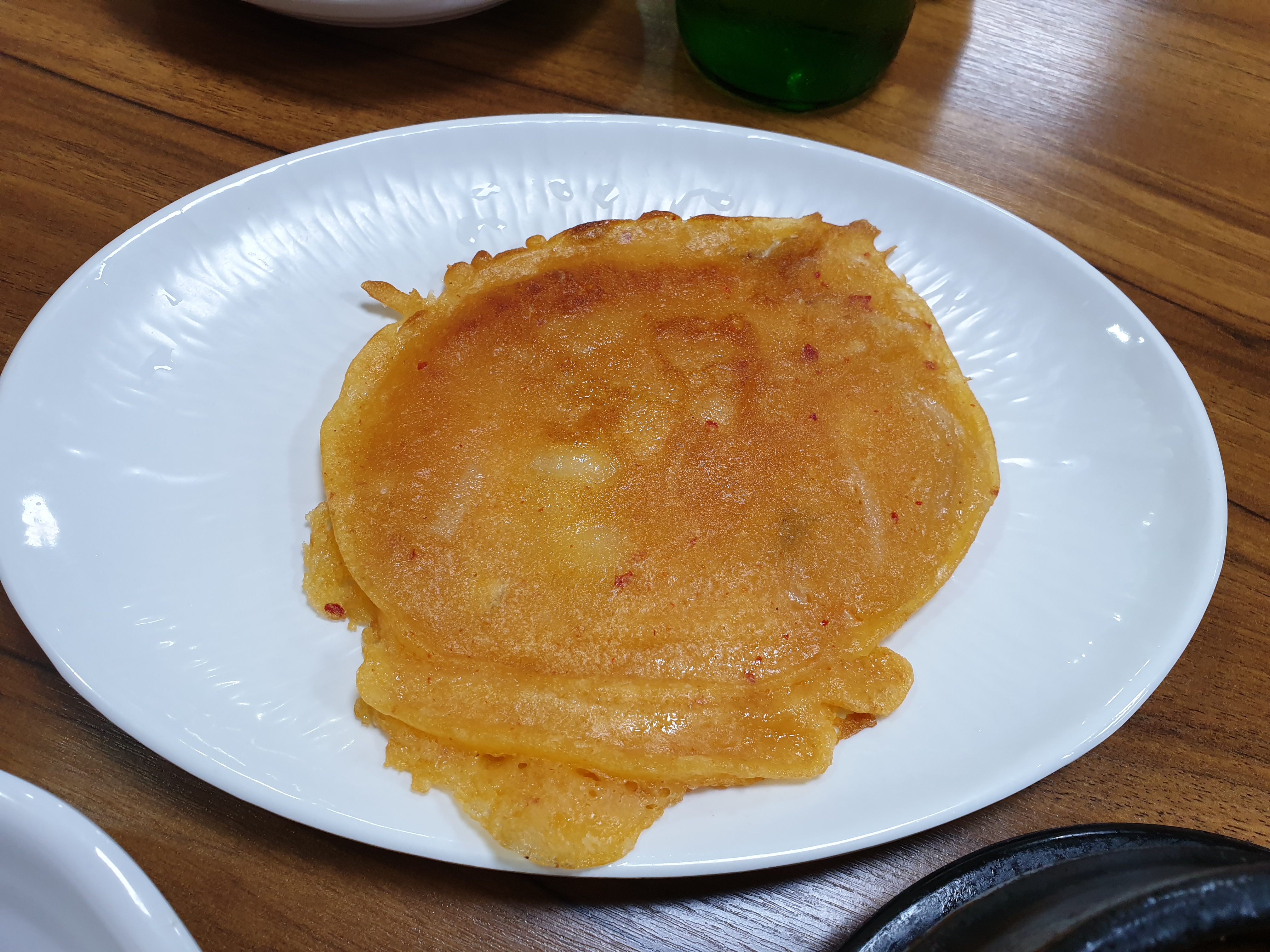 색깔로 보아 김치전이라 생각됩니다. 김치는 찾을수 없었어도 김치전일 것입니다. 비쥬얼과 양에 서서히 불안해지기 시작합니다. 아직 늦지 않은것일까... 아니면 이미 늦은것일까 하는 생각이 머리속에서 맴돌기 시작합니다.