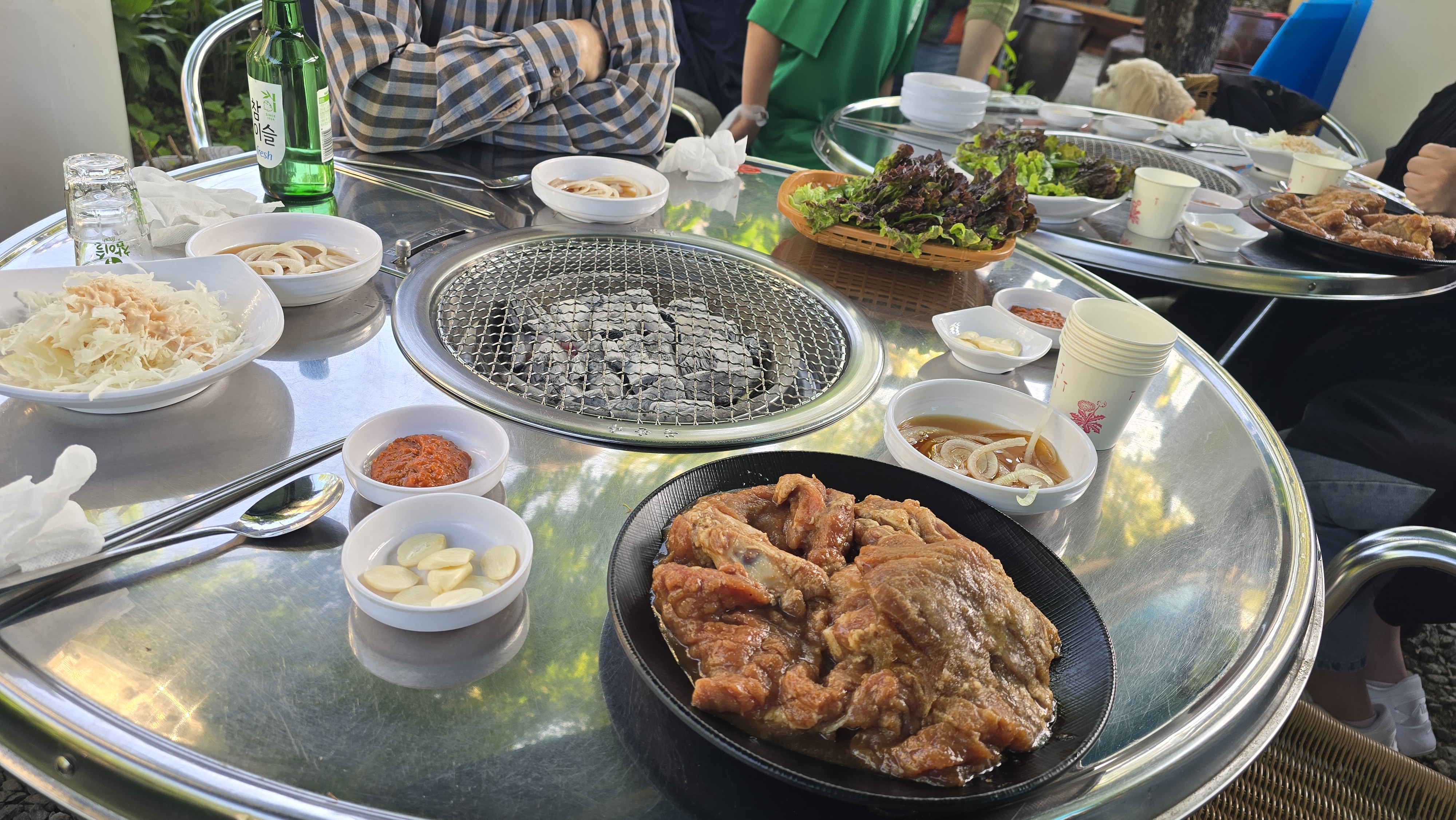 고기를 야외 바베큐 스타일로 즐기니 너무 맛잇어서 추가로 주문하고 냉면도 시키고 반찬도 리필해가면서 즐겁게 고기를 맛봅니다. 야외테이블에는 벨이 없기 때문에 반찬이나 추가로 부탁할 것은 안쪽에 셀프로 해결하는것이 스트레스를 받지 않고 즐거운 야장을 즐기는 방법이라 할 수 있습니다.