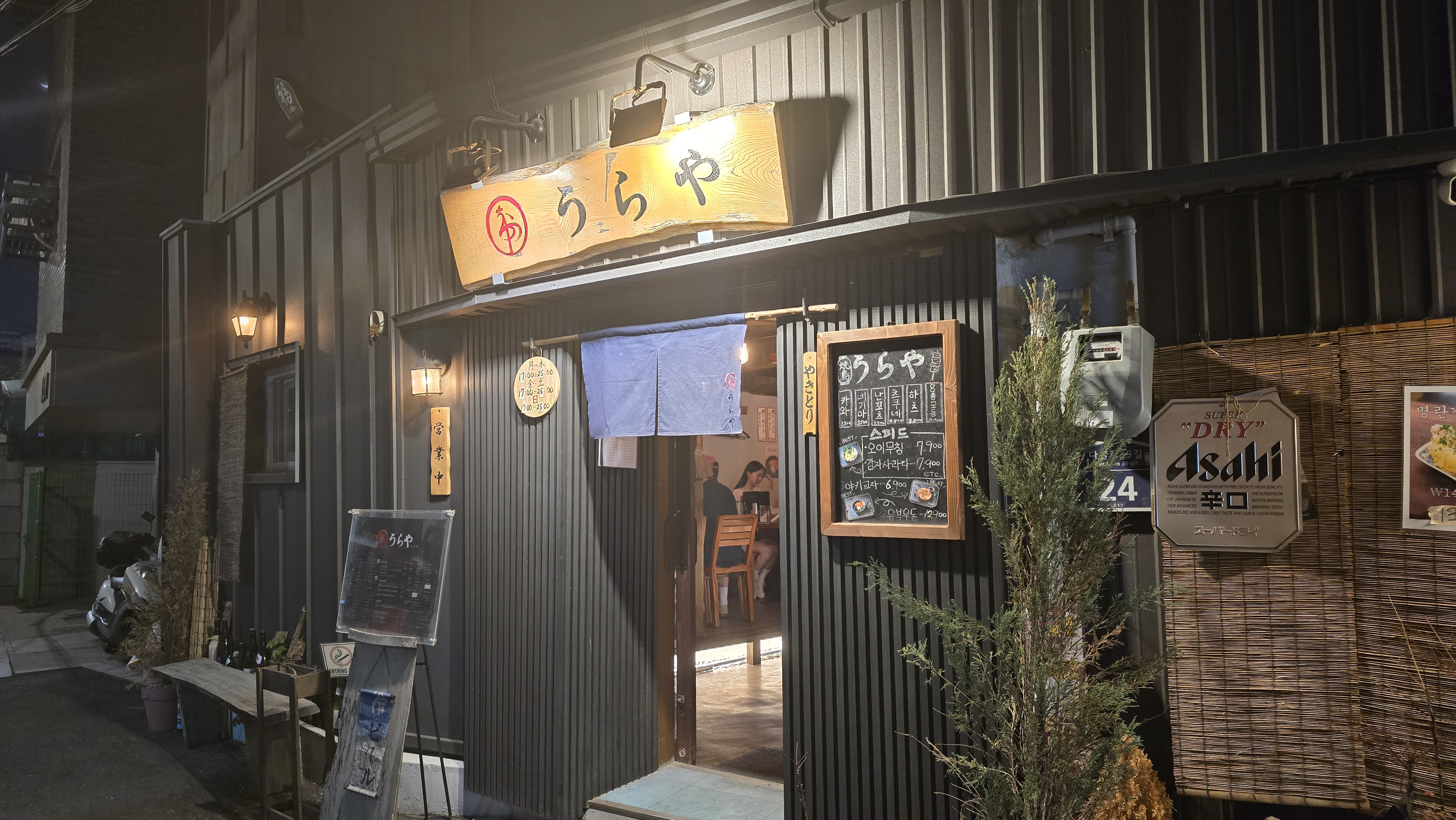 신당역 주변 식당거리 무엇을 먹을까 이곳저곳을 둘러보다 일본어로만 된 간판이 눈에 들어옵니다. 가까이가서 살펴보니 일본어로 조그마한 골목식당을 뜻하는 우라야(うらや)가 쓰여있고 간판대로 조촐해보이는 일본식 이자카야가 보여지고 있습니다. 조용한 분위기에서 술한잔하기 좋아보여 들어가서 경험을 해보자는 생각에 저절로 발걸음을 안쪽으로 옮기게 됩니다.