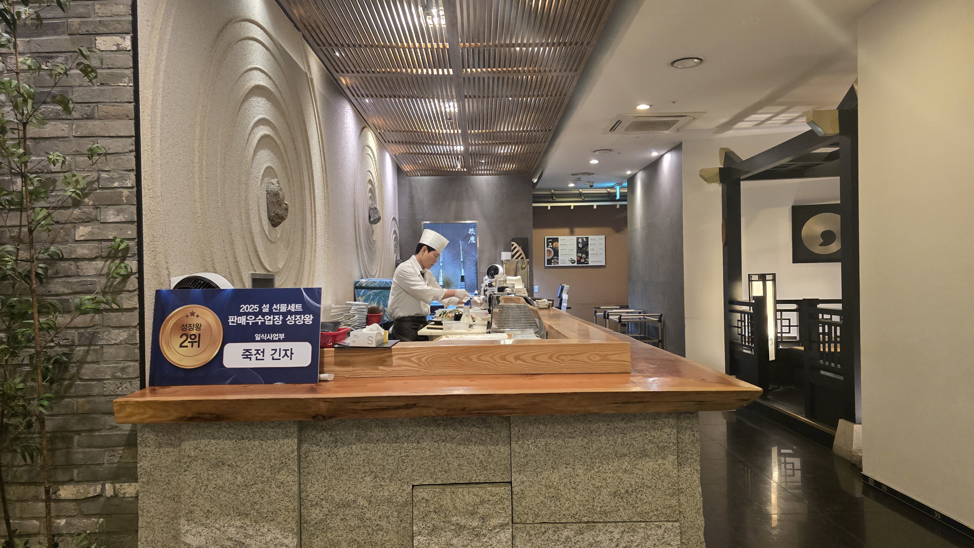 가게안으로 들어가니 가장 먼저 보이는 것은 테이블 가운데 셰프님이 들어가있는 전형적인 일식 테이블 구조로 테이블에 앉아 오마카세를 즐기거나 일본풍의 느낌이 나는 룸에서 프라이빗스러운 자리를 가질 수 있게 선택할 수 있는 점입니다.