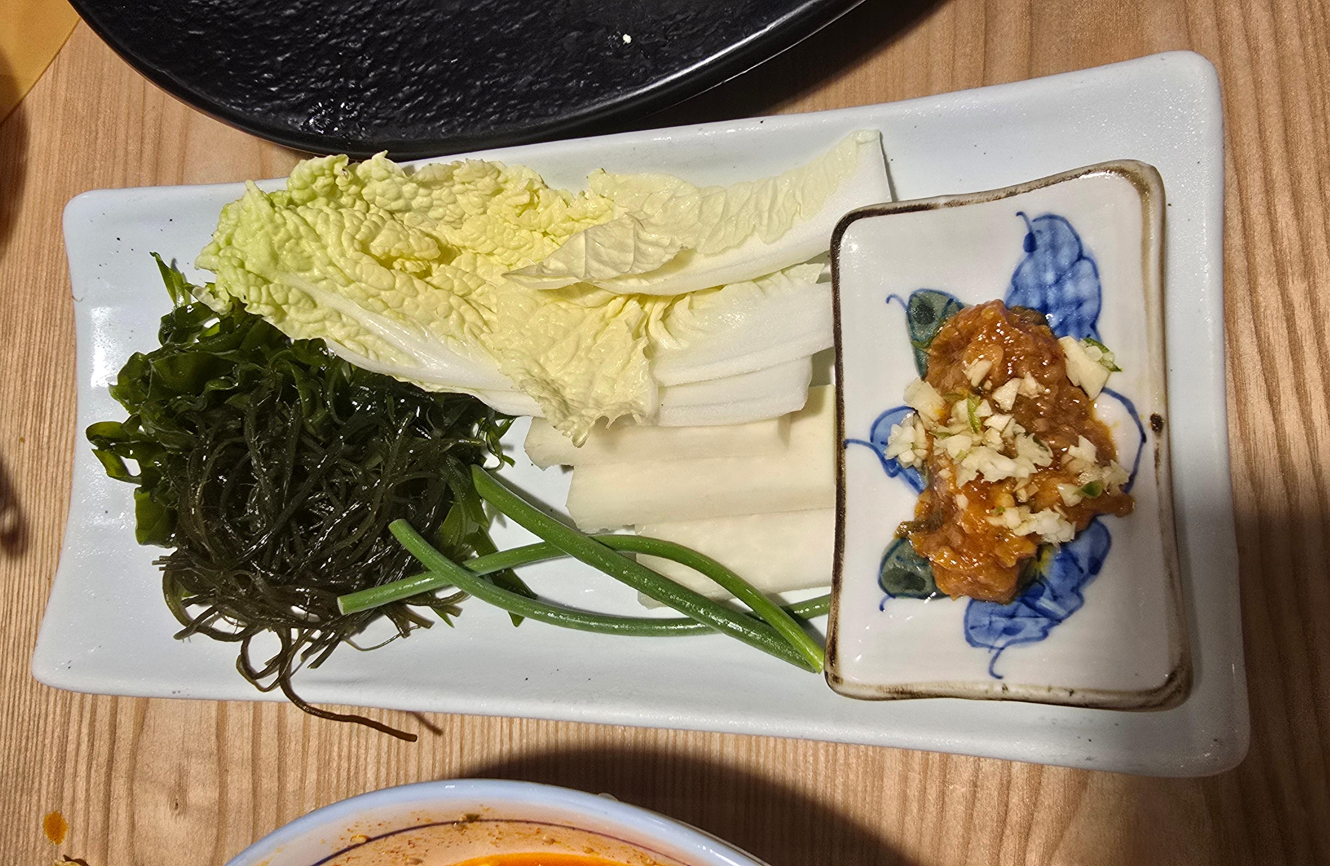 주문한 물회와 숙성회를 묵은지와 여러 해초와 곁들이며 맛을 보니 참으로 맛잇게 느껴지며 쌈장도 곁들여보고 최적의 조합을 찾아봅니다. 역시 한식과 일식은 여러가지 재료를 자기 마음대로 커스터마이징해서 최고의 맛을 찾는 재미가 있습니다.