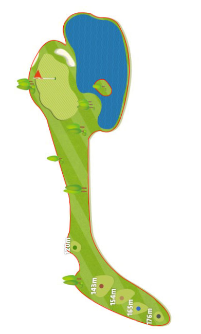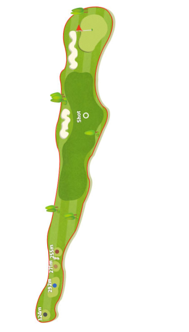 안정적 3온 작전이 필요하며 역시나 그린 뒤쪽은 공간이 없어 조금 길게 샷이 구사되면 무척 어려운 트러블 샷을 하게 될 수 있으므로 주의가 필요합니다.