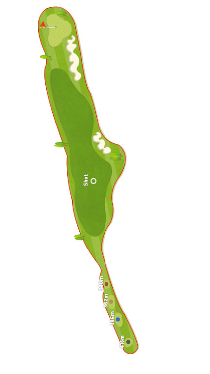 운이좋게 IP지점 페어웨이에 떨어뜨리더라도 그린까지는 오르막 포대그린으로 조성되어 있어 막판에 실수를 유발하기 좋으며 마무리에 기분이 나빠지지 않으려면 안정적으로 공략하는 것이 좋습니다.