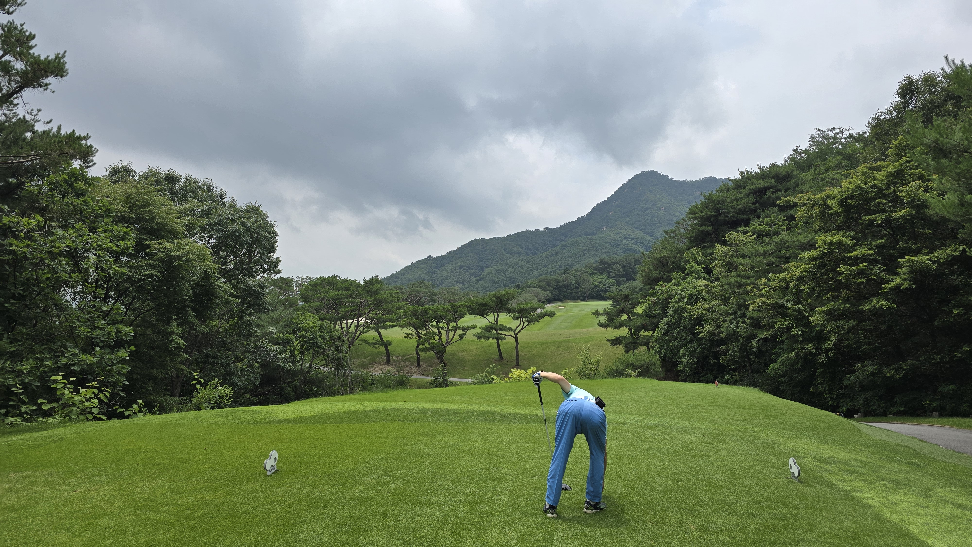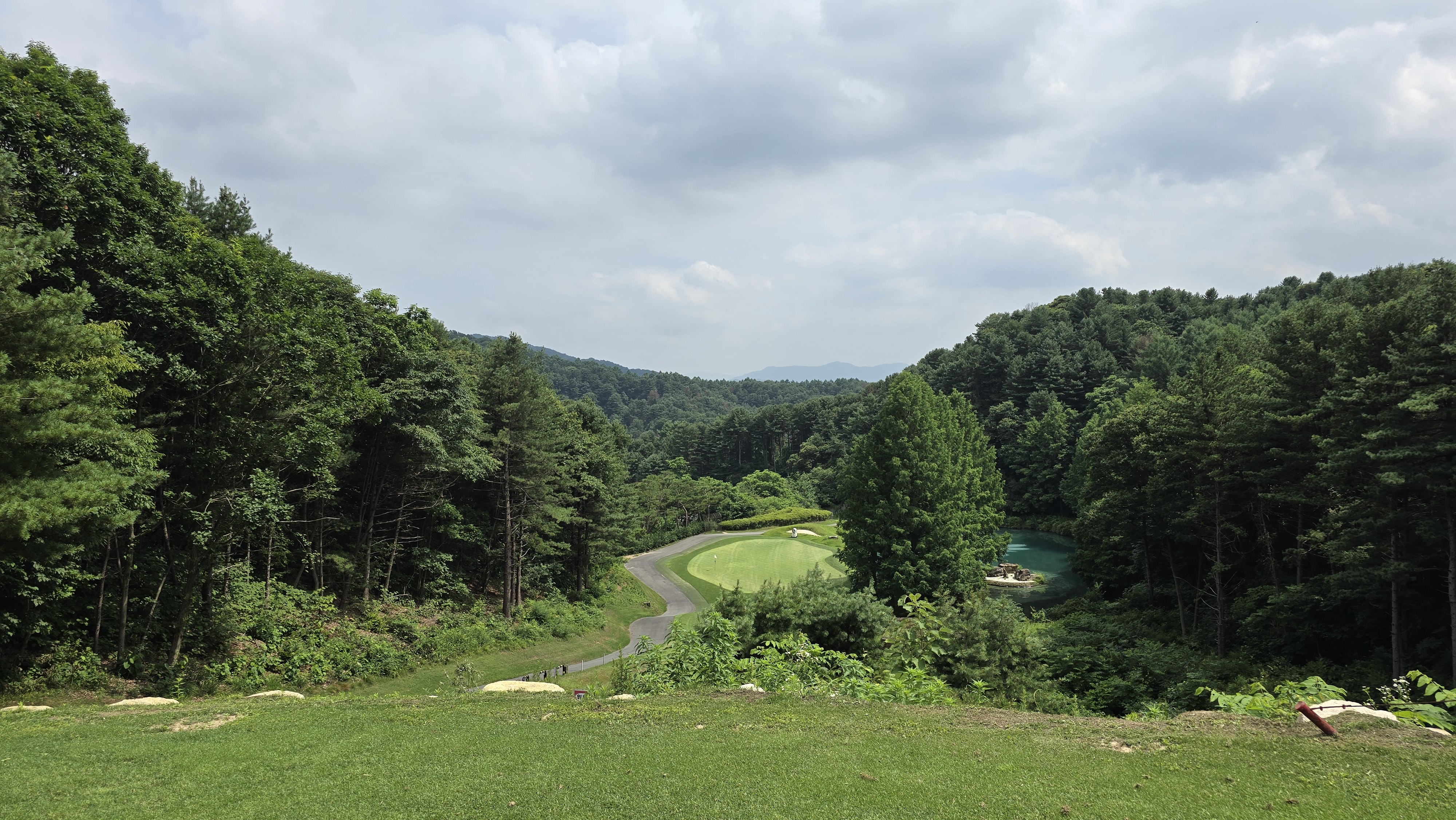 안전하게 아이언으로 끊어가는 티샷을 담아봅니다. 짧은 파4홀이기 때문에 굳이 끝까지 보내지 않더라고 온그린하는데는 문제가 없어 욕심만 부리지 않는다면 안정적으로 마무리가 가능한 홀이라 할 수 있습니다.