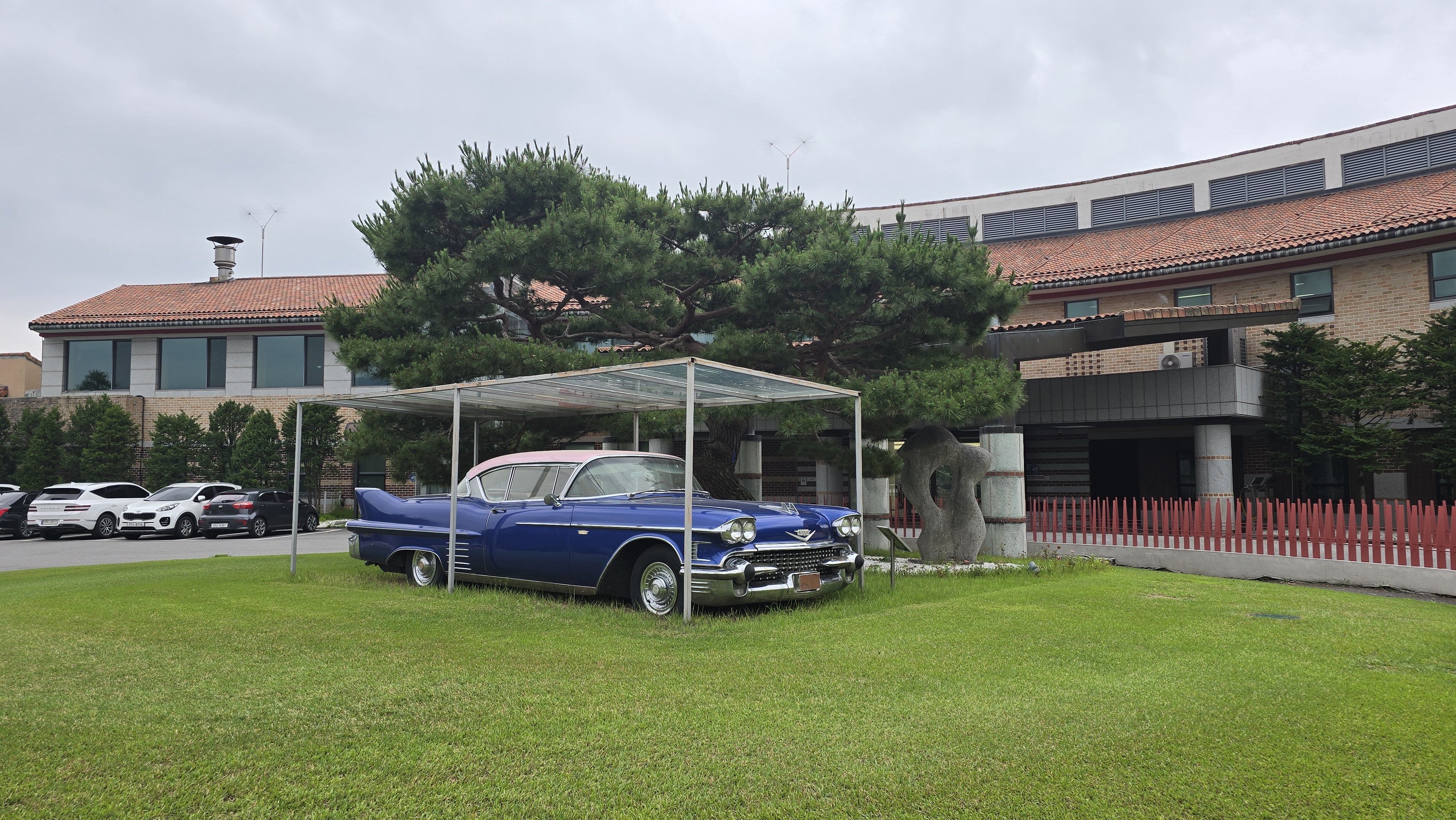 썬힐cc에 도착하여 클럽하우스를 바라보니 고풍스러운 차량이 장식되어 있고 주변 잔디가 좋아보이는게 오늘은 관리잘된 쉬운 골프장에서 좋은 스코어가 나오겠다는 방심이 고난을 자초했다는것을 지나고 나면 알게됩니다.