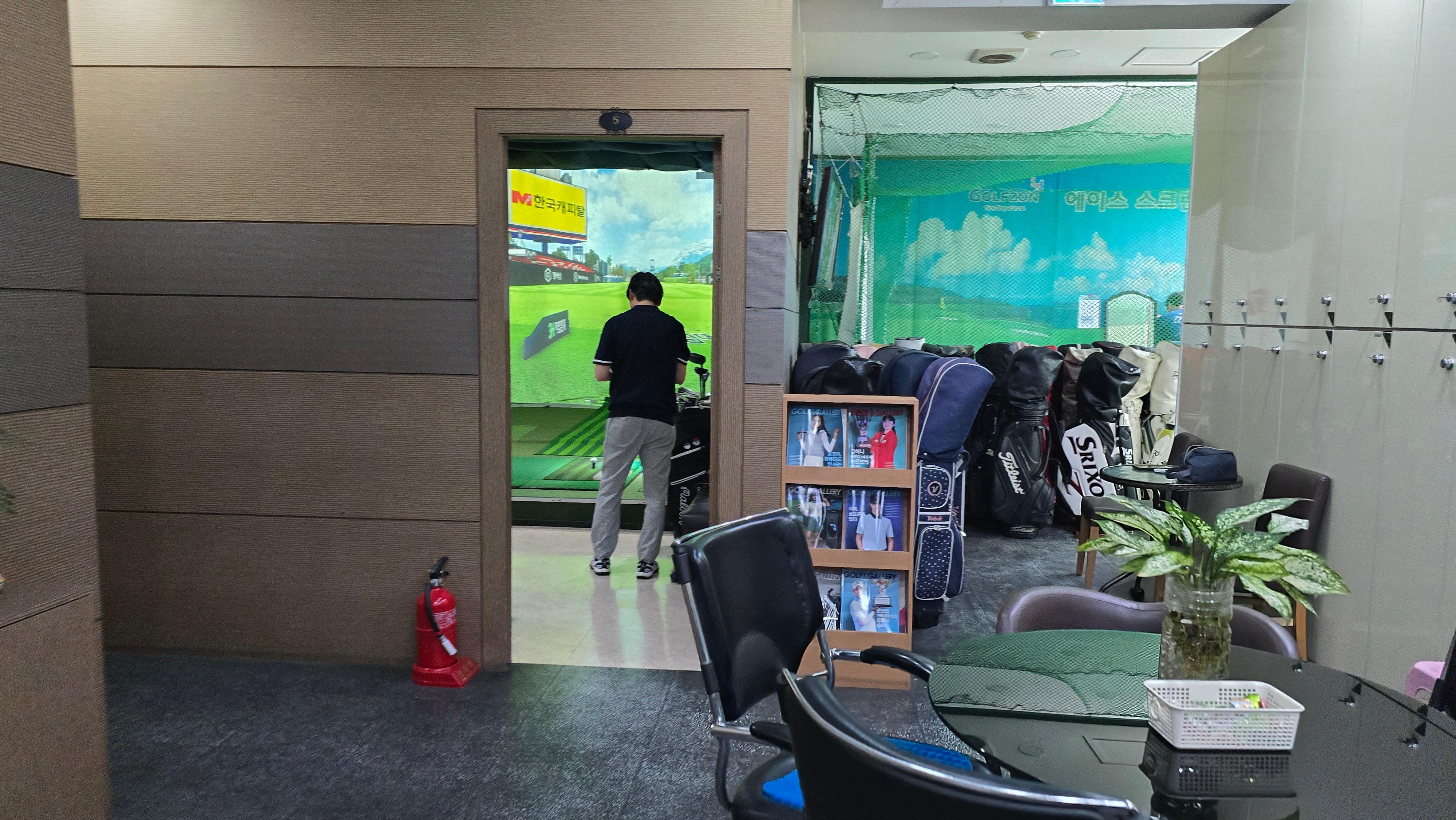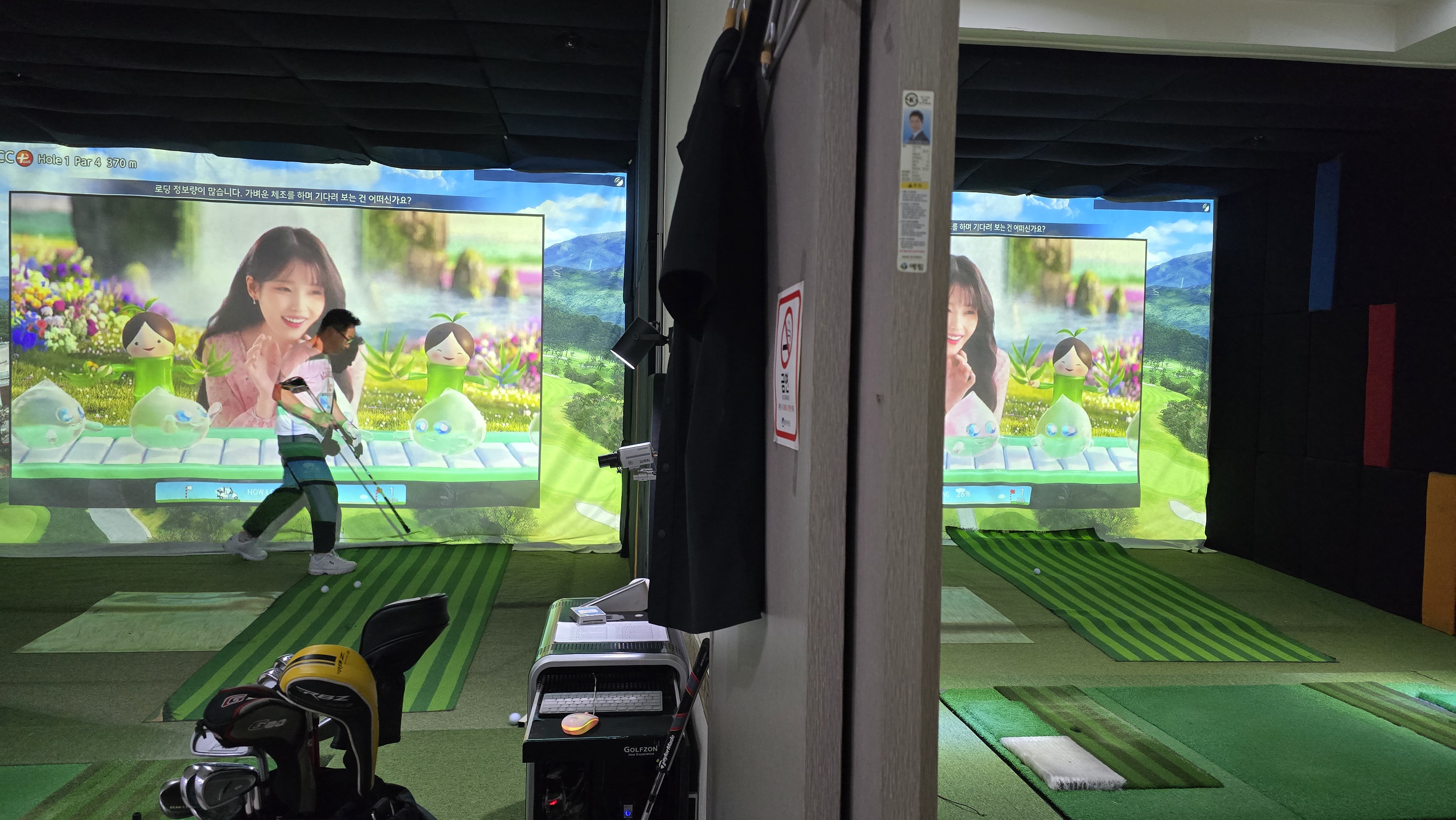 가장 좋은 점은 방끼리 중문으로 연결되어 있어 열거나 닫고 플레이가 가능하기 때문에 네트워크 플레이시 좌석에 앉아 상대방의 플레이를 보면서 진행상황을 리얼타음으로 볼 수 있다는 것이며 좌석도 넓기 때문에 많은 인원이 골프존 시스템을 원할때 효율적으로 플레이가 가능하다는 점입니다.
