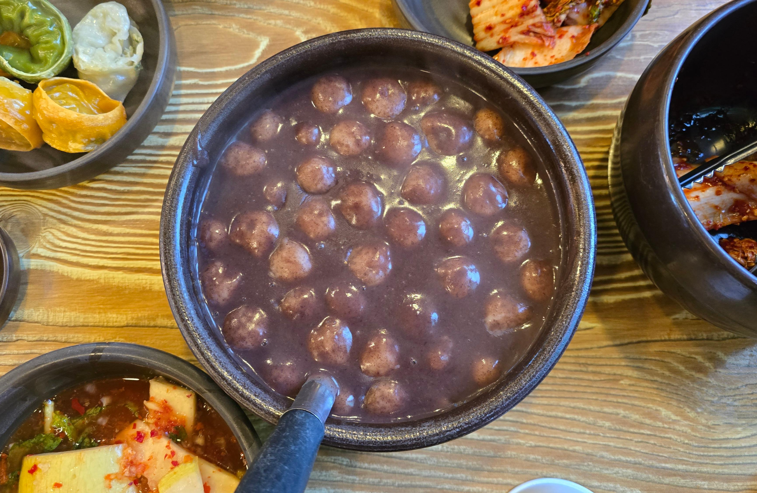 최고집의 대표메뉴로 또 팥죽이 빠질순 없습니다. 맛있어 보이는 비주얼의 팥죽을 덜어 맛을보니 고소함이 가득한 팥죽에 잘 양념된 새알심이 들어가 씹으면 쫄깃하면서도 짭잘한 간이 팥죽과 어우러져 상당히 맛있게 느껴지고 있습니다.