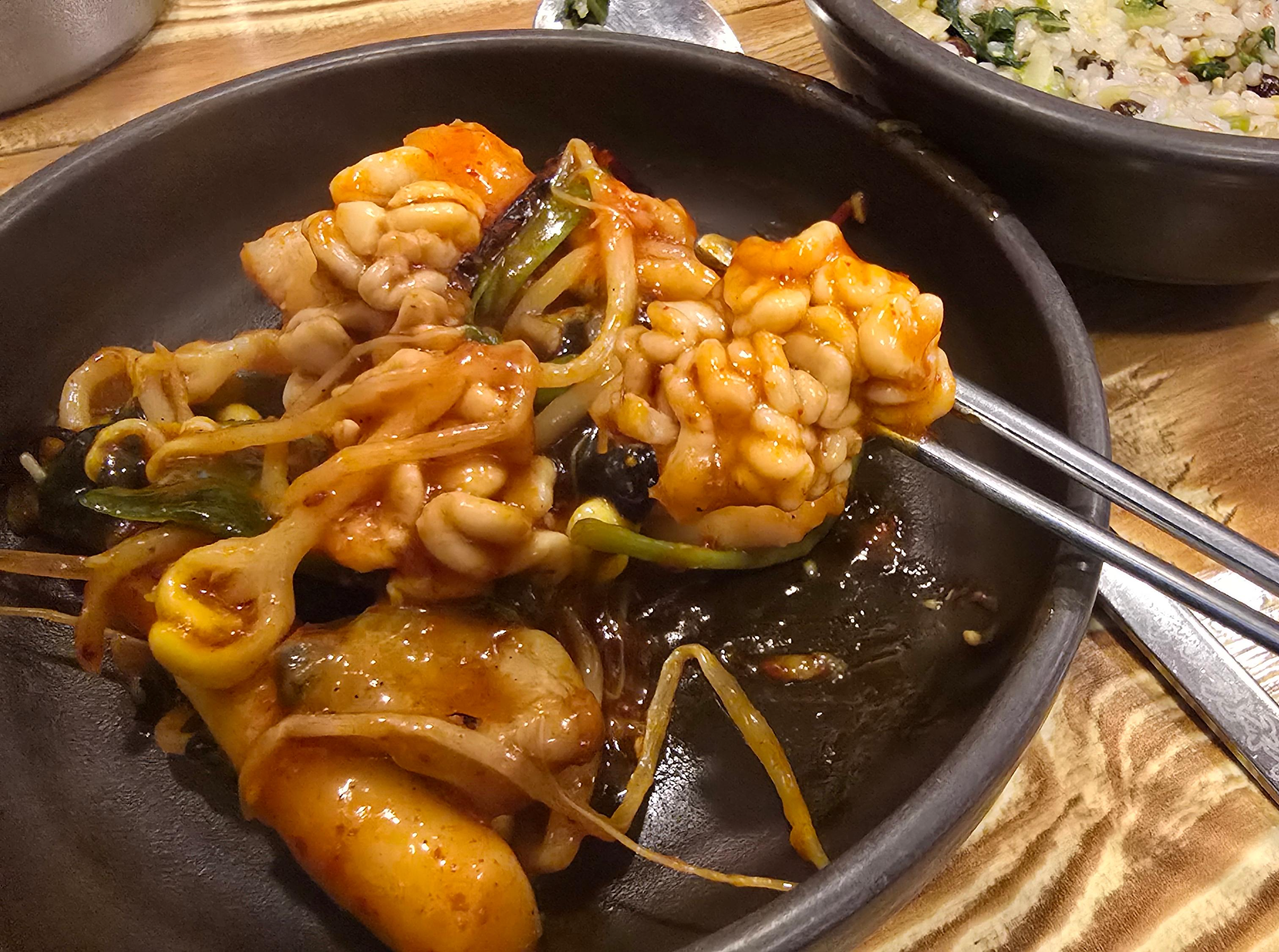 뒤이어 아구찜이 나와 살과 내장, 껍질까지 맛을 보니 맵지않고 적당한 간에 감칠맛이 돌아 대중적으로 좋아할 만한 맛이며 매운맛을 좋아하는 분들이라면 싱겁게 느낄 수 있는 타입입니다.