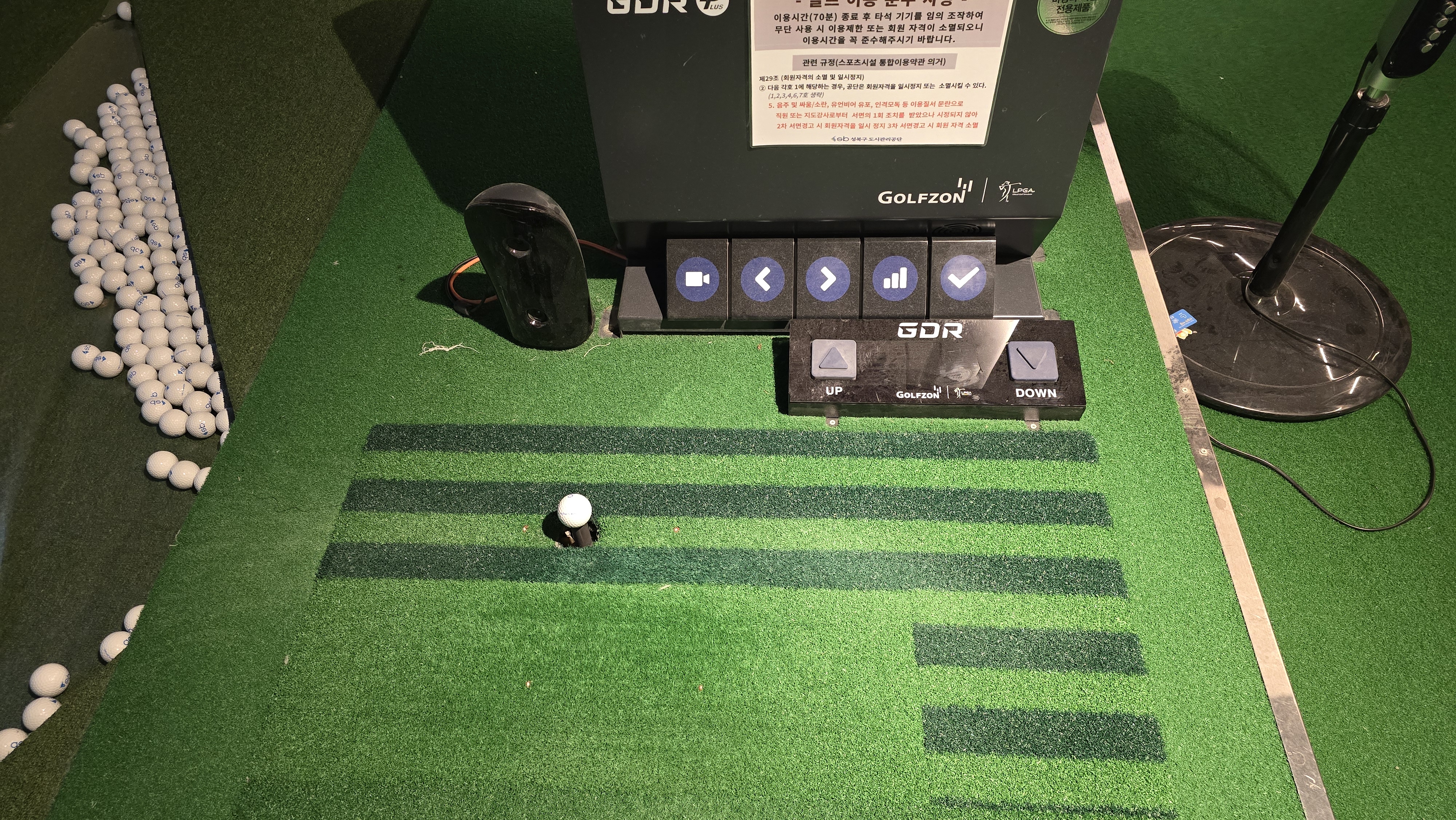 카운터에 회원카드를 제시하고 70분 15,000원의 합리적인 가격으로 GDR 골프 연습을 시작해봅니다. 매트와 공의 상태를 우선 살펴보니 깨끗하게 잘 관리되어 있어 컨디션이 무척 좋게 느껴지며 냉방도 잘 되는데 타석마다 선풍기가 배치되어 있어 아주 시원하게 연습을 즐길 수 가 있습니다.