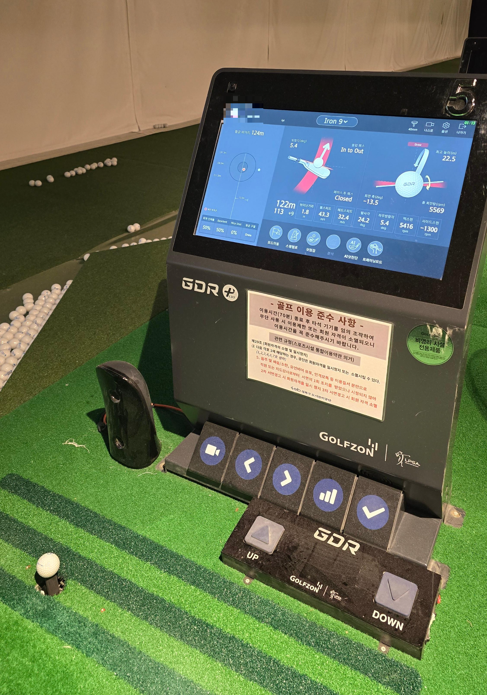 자세외에도 골프존 GDR 시스템을 통해 샷마다 얻어진 헤드스피드, 볼스피드, 발사각, 백스핀, 사이드스핀 등을 보며 스윙궤도가 어떻게 작동되고 있는지 한타한타 끝날때마다 자세히 살펴보며 이를 수정하려는 연습을 해봅니다. 인아웃 궤도를 통해 스윙은 들어오지만 릴리즈 타이밍과 헤드 각이 조금은 불일치하는 모습을 보이므로 타이밍을 맞추기위해 지속적으로 연습을 해봅니다.