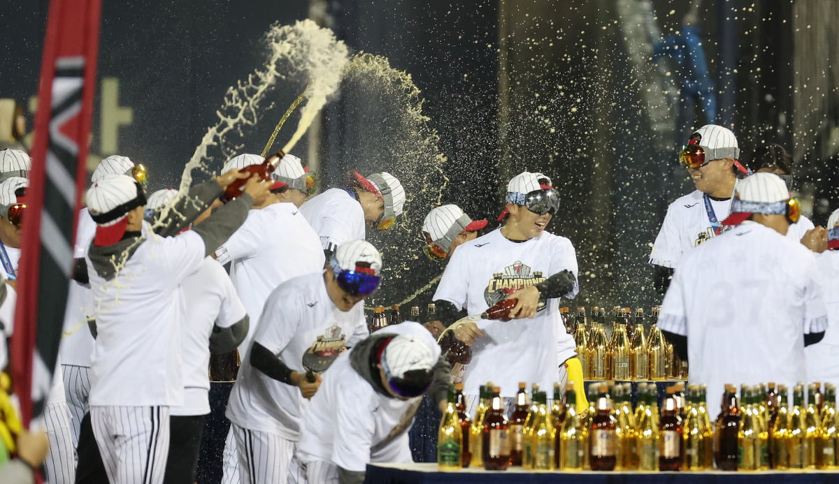 2023년에는 엘지의 샴페인 샤워가 엘지팬들의 29년만의 한을 풀어주고