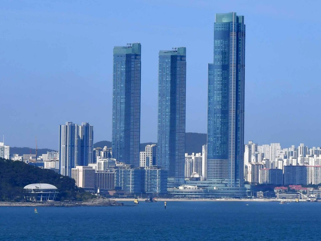 해운대 엘시티의 가장 높은 건물인 더샵은 3개로 이루어져 있으며 높이가 높은순으로 랜드마크, A, B로 이름이 붙어있습니다.