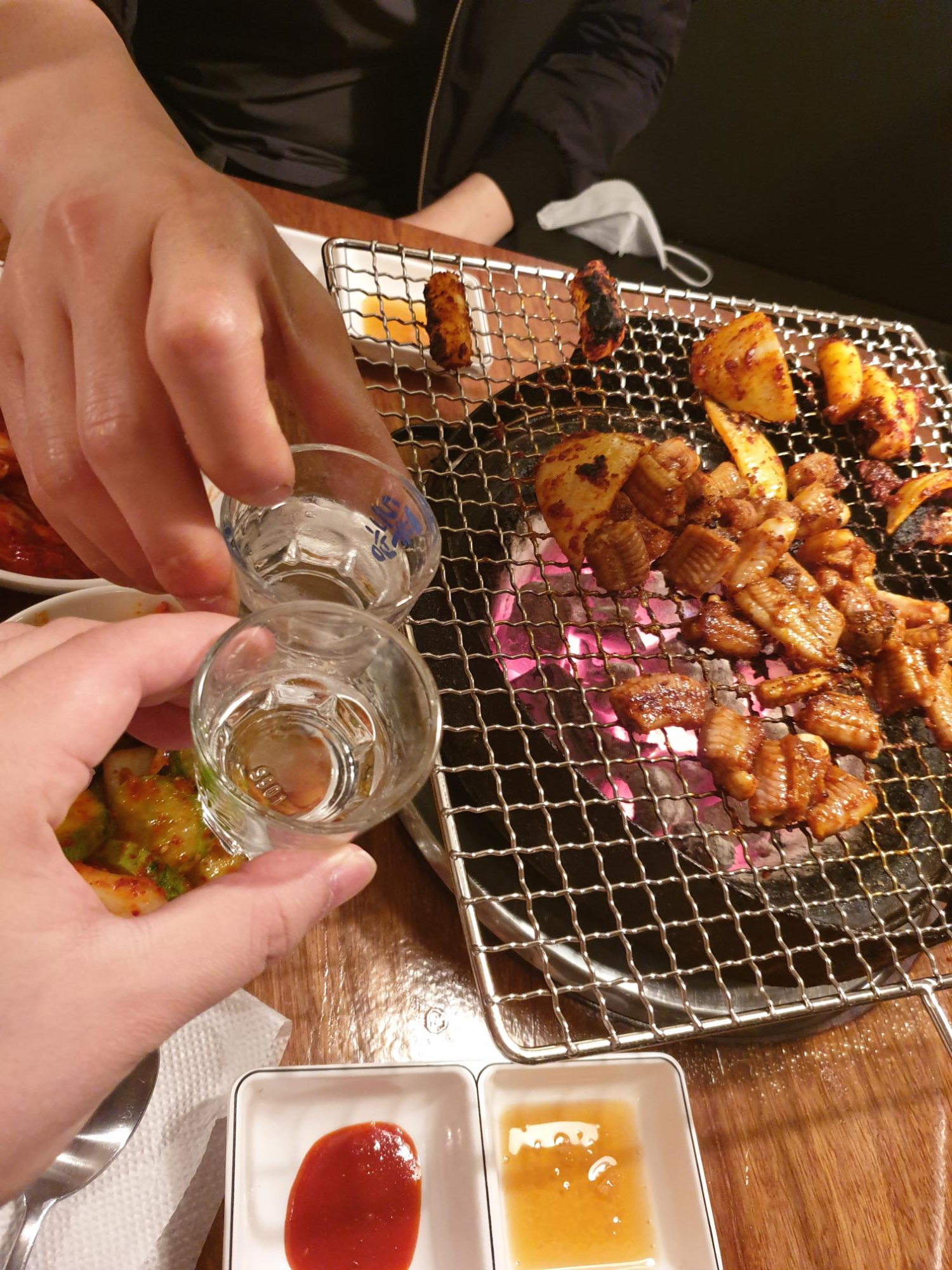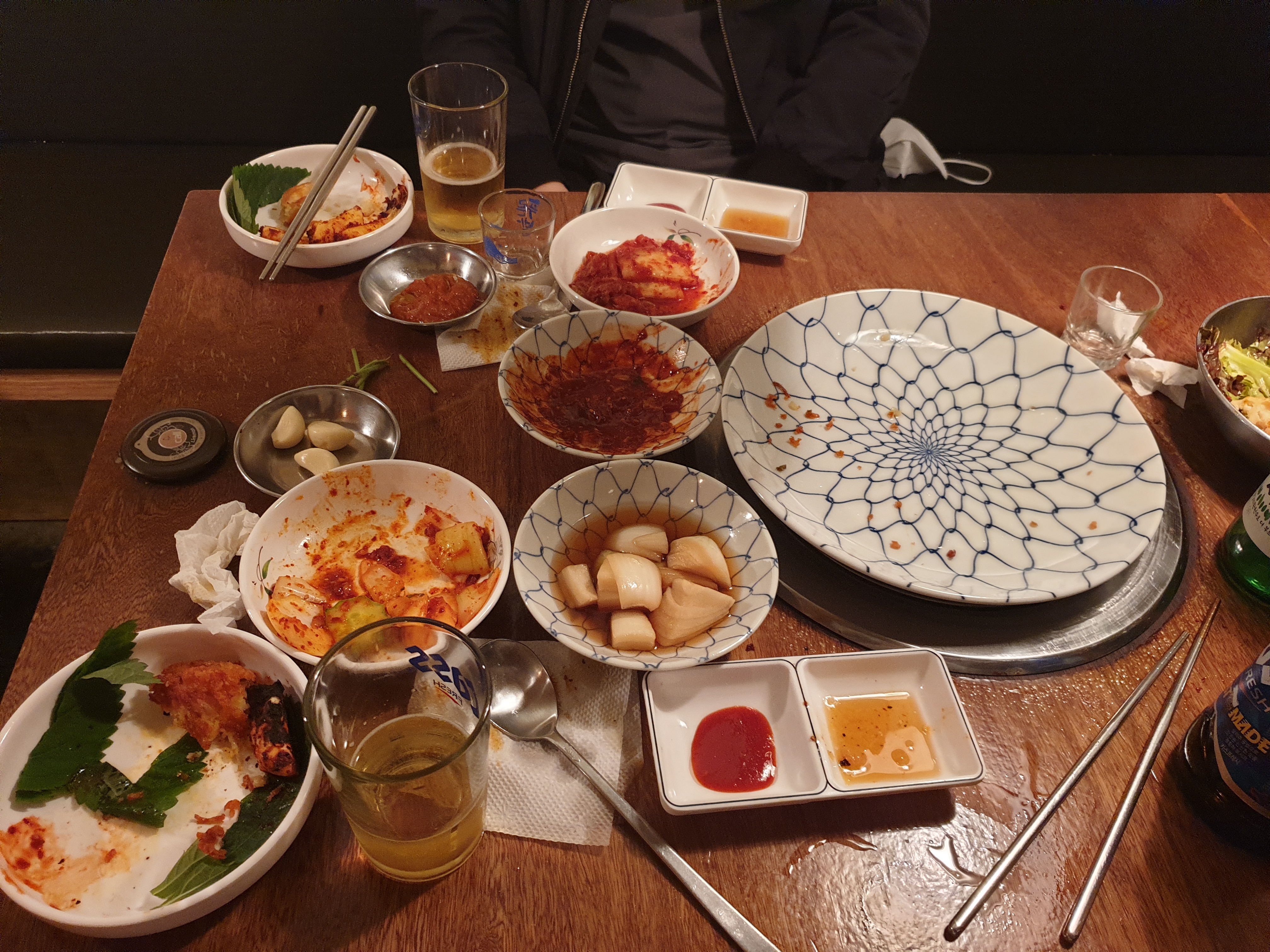 맥주도 소주도 안주도 모두 비우고 포만감에 즐겁게 비즈니스를 마무리합니다.