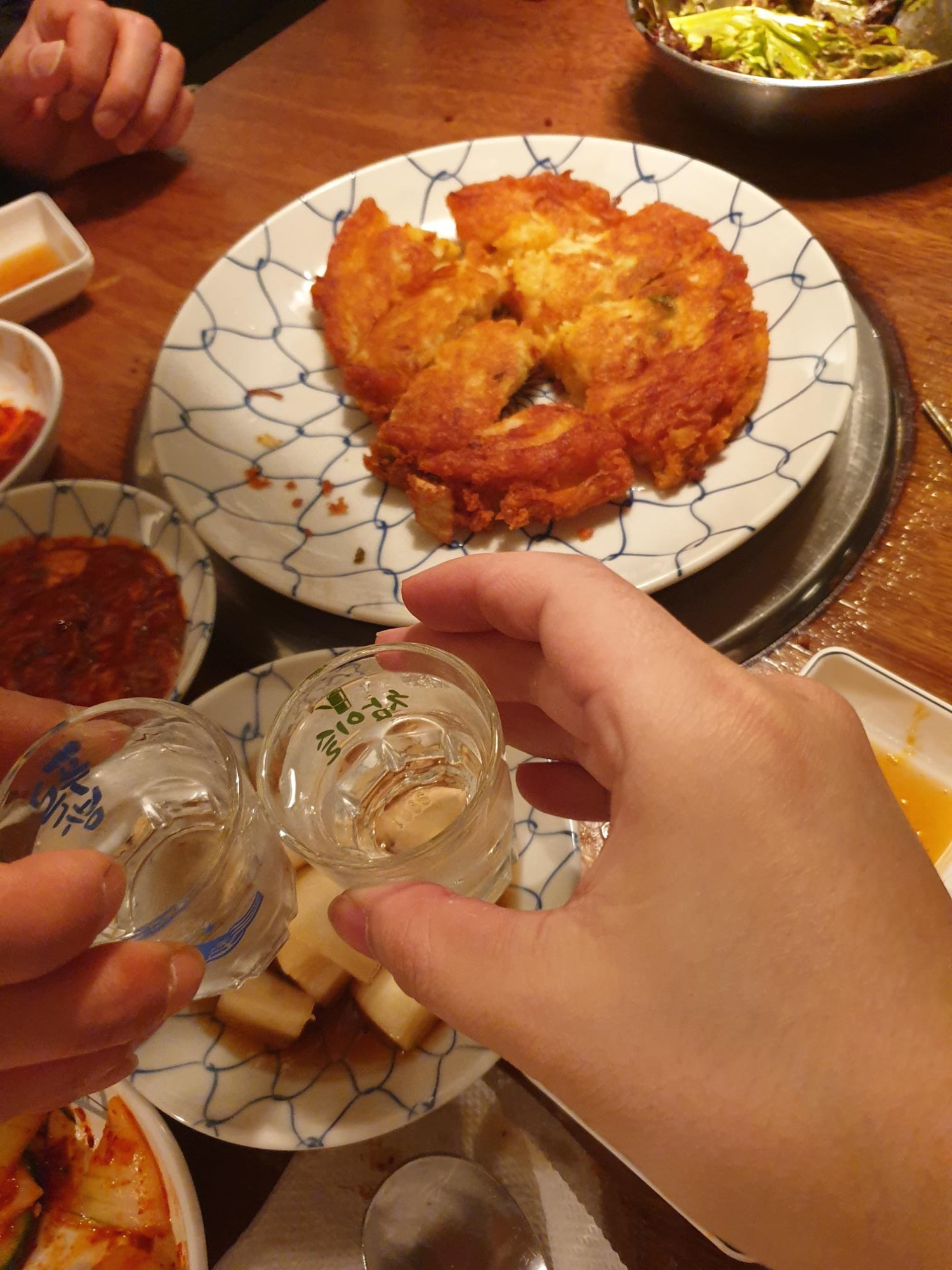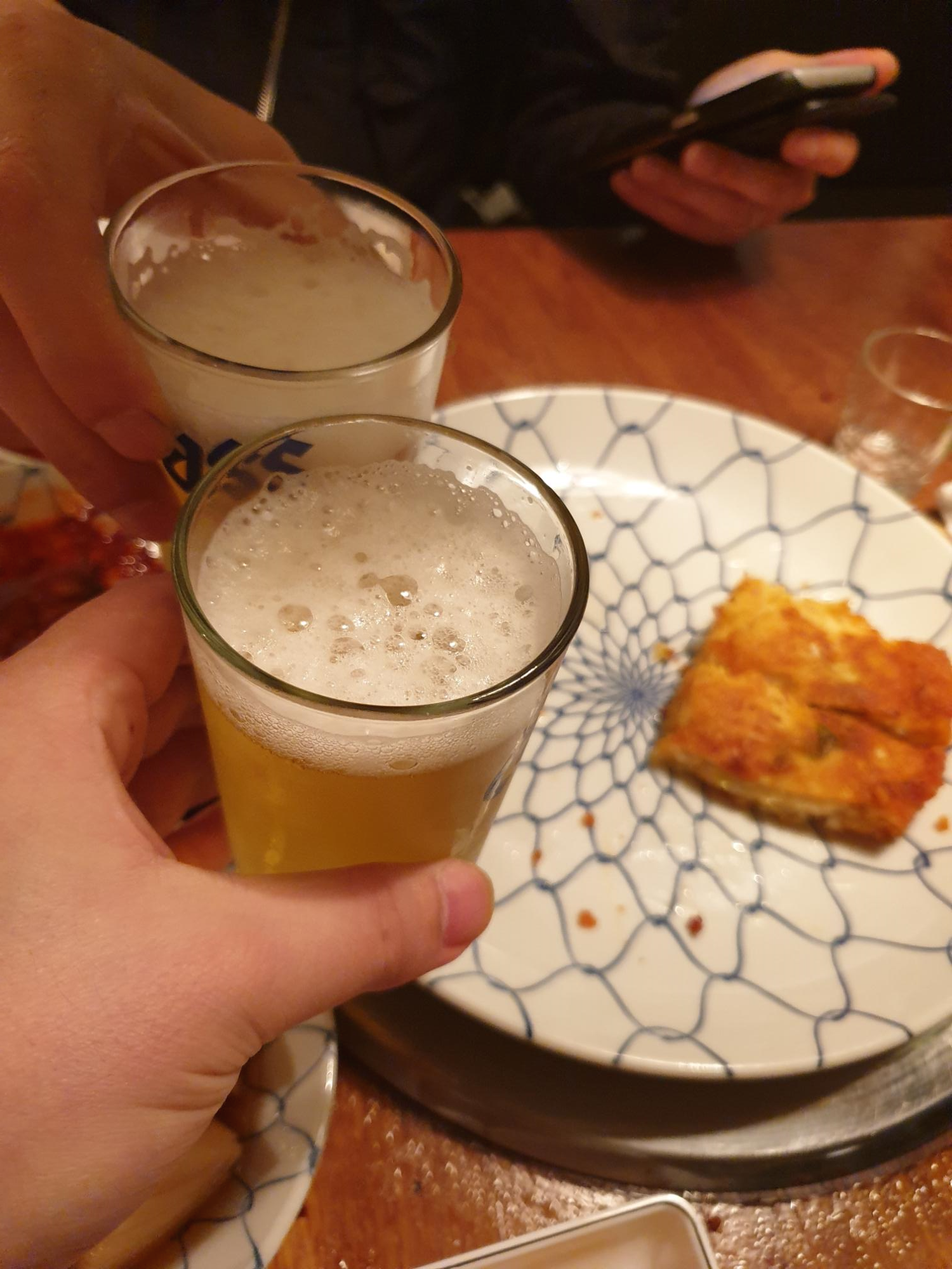 이제 어리굴젓도 클리어하고 남은 빈대떡은 맥주를 시켜서 안주삼아 비워봅니다. 기름진 음식들을 맥주가 마무리로 개운하게 씻어주는것 같습니다.