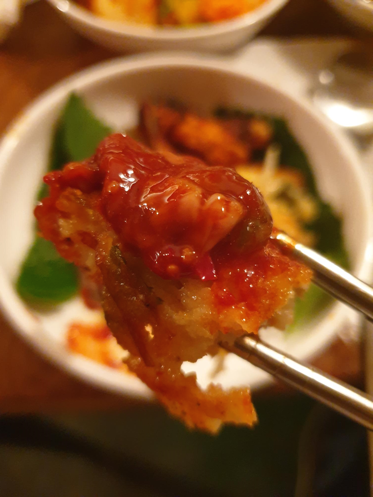 어리굴젓과 빈대떡의 조화 생각만해도 입에 침이 고입니다. 빈대떡의 자칫 느끼해질수도 있는 단조로운 맛을 어리굴젓이 기가막히게 잡아주고 있습니다.