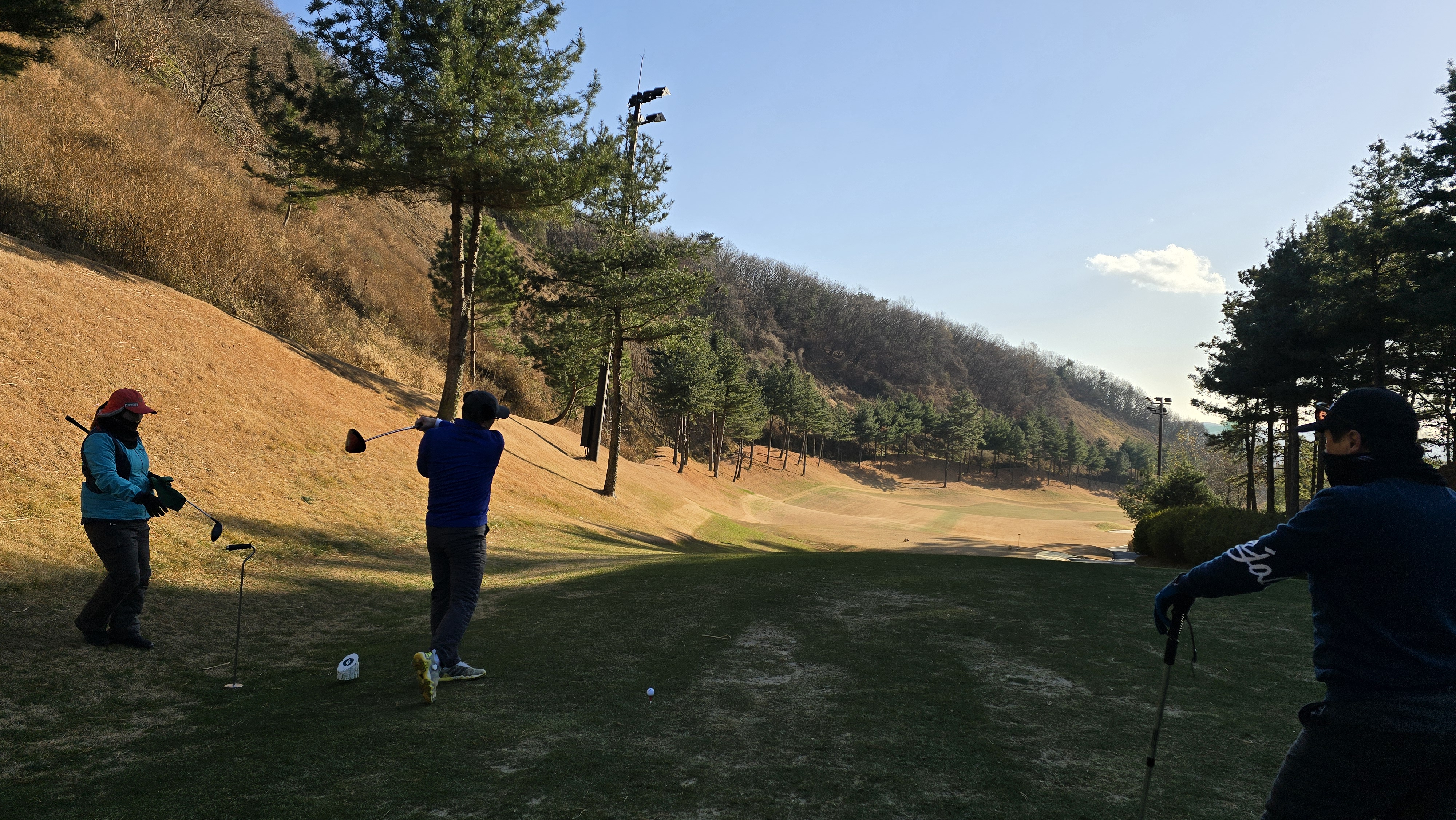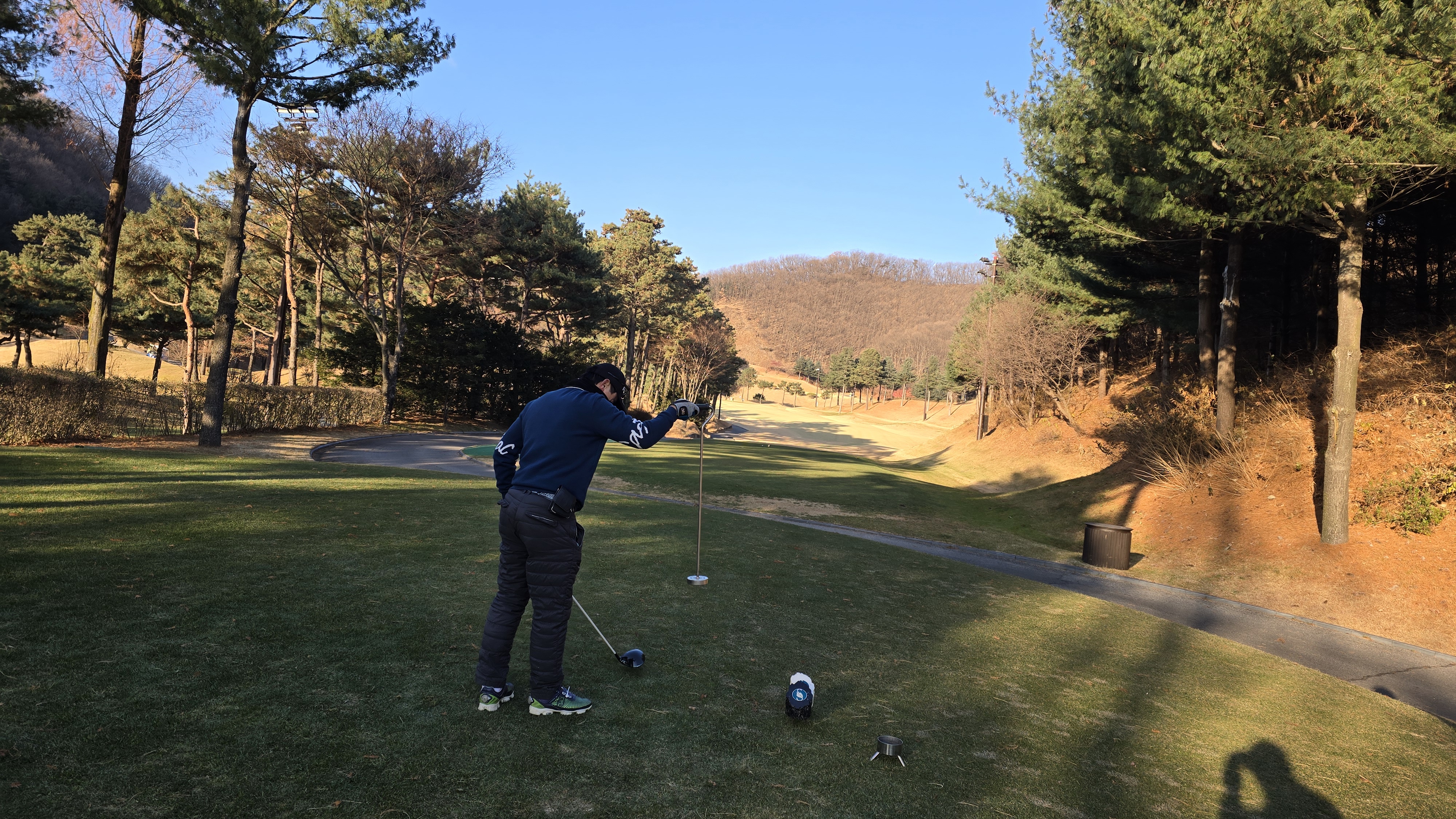 거리가 짧은 홀이기 때문에 힘을 줄필요도 없이 가볍게 툭 가져다 대는 스윙으로 공략해봅니다. 역시 무리없이 IP지점으로 가며 변수가 그리없는 홀입니다.