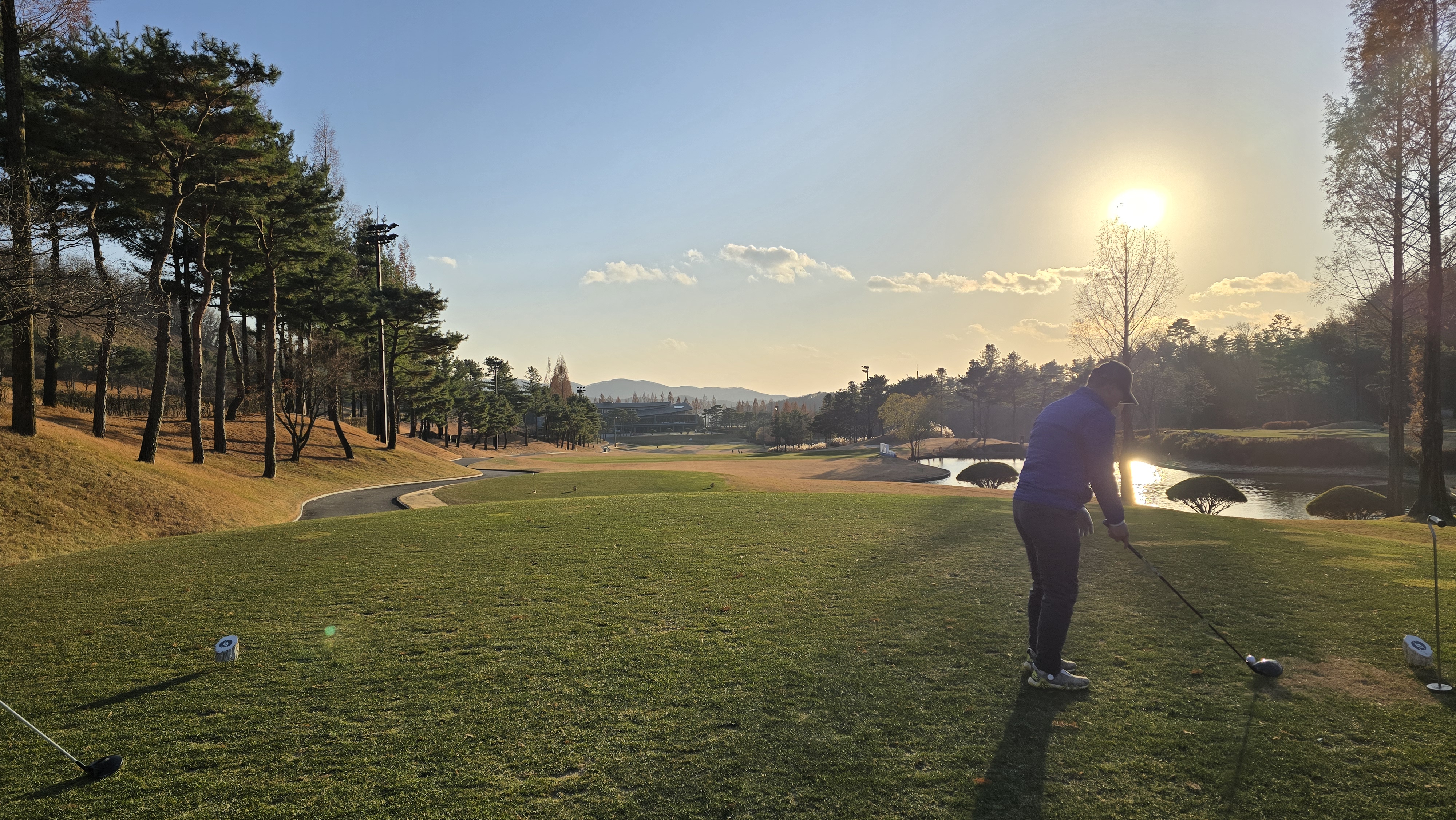 이스트 마지막 9번 440m의 파5홀 2온이 가능한 거리이고 페어웨이도 넓고 중간에 장애물도 없어 매우 무난하게 느껴지지만 그린 옆으로 워터해저드를 깔아놔서 아일랜드 홀과 같다고 느낄수 있기 때문에 세컨 우드 사용이 그리 만만치 않은 코스입니다.