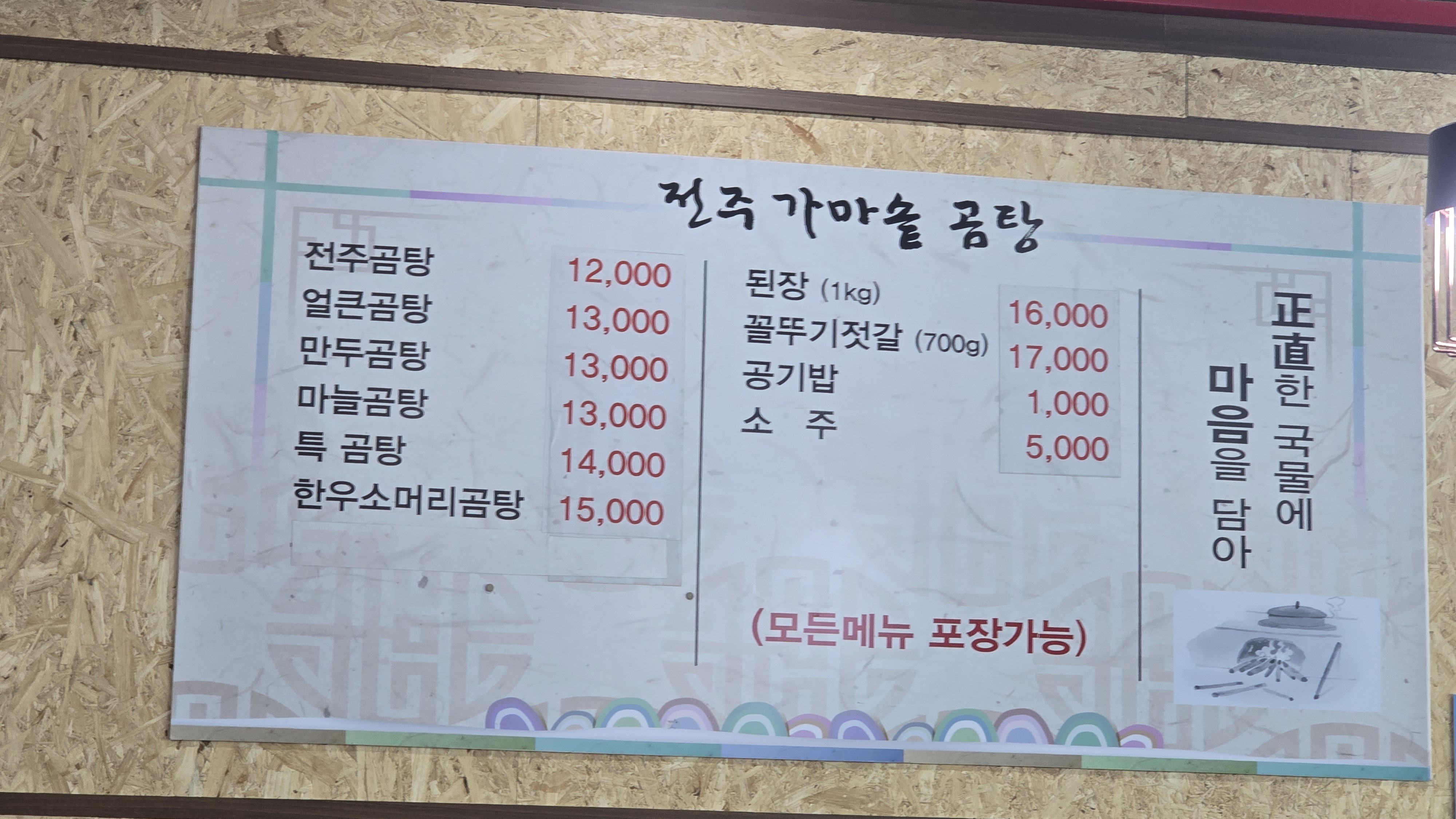 메뉴판을 살펴보니 곰탕 단일메뉴이며 6개의 소메뉴로 구분되어 있습니다. 단일메뉴의 자신감을 보니 저절로 맛있겠다는 생각이 들며 가장 기본을 주문해서 테스트 해보기로 합니다.