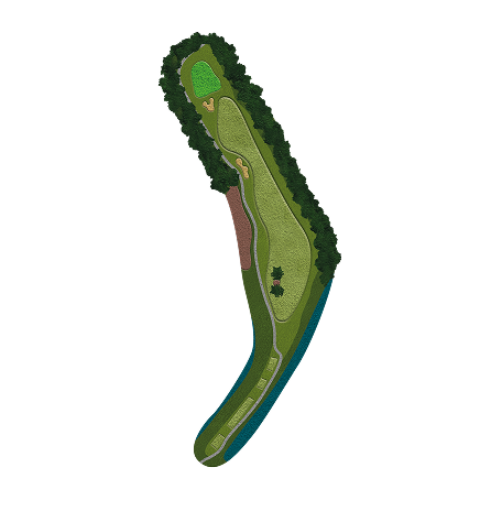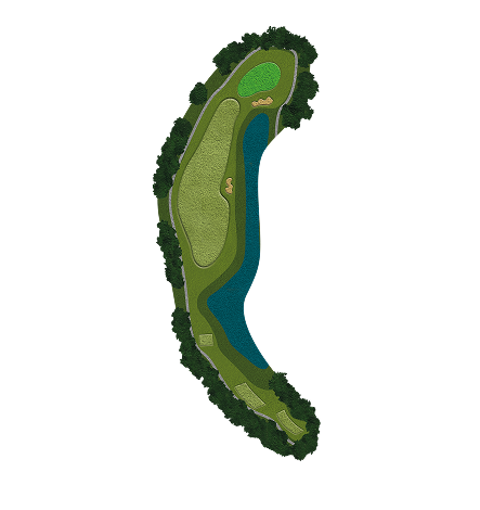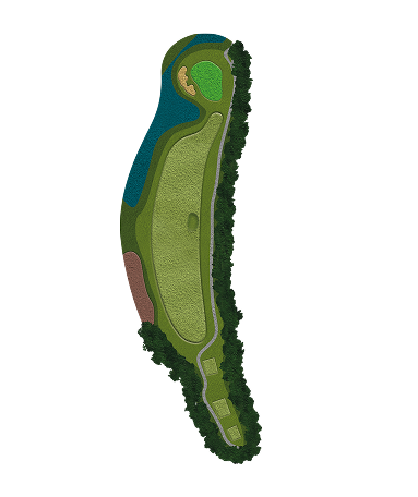 티샷이 똑바로가도 죽는 억울한홀로 필자는 끝에 걸려 막창전에 겨우 살았으며 다음샷은 그린왼쪽에 워터 헤저드가 움푹 들어와있어 티샷거리가 길수록 파3 아일랜드 홀을 연상케하는 난이도가 펼쳐지므로 티샷은 페이드를 칠수있으면 가장 좋고 너무 세게치거나 당겨서 막창만 나지 않게 공략한다는 마음가짐이 중요합니다.