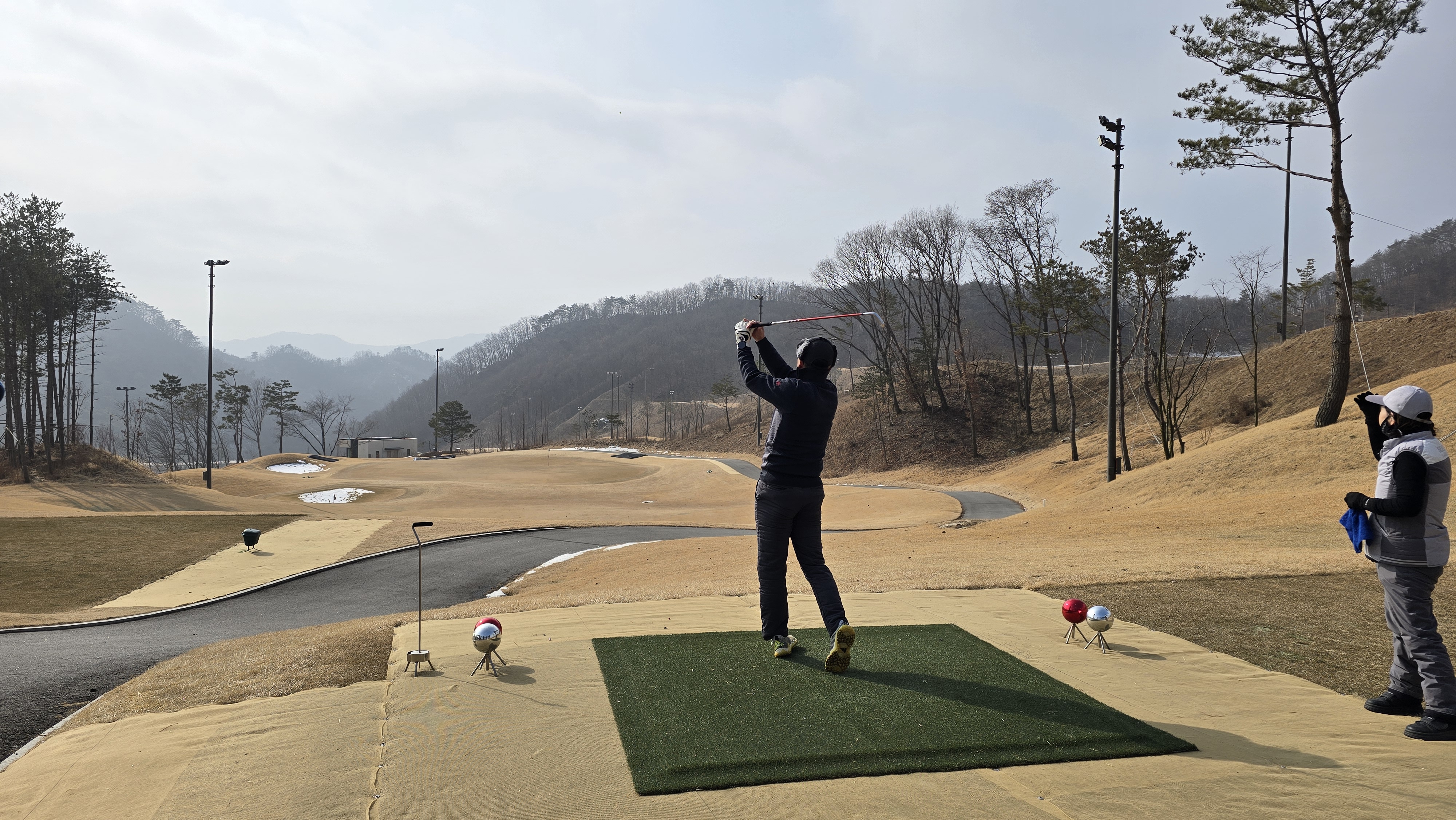 1번은 직선형 무난한코스 세컨에서 올리고 그린상태를 체크해보니 겨울임에도 매끈하게 잘 관리되어 있는 모습이 역시 신생구장의 깔끔한 모습을 보여주고 있습니다.
