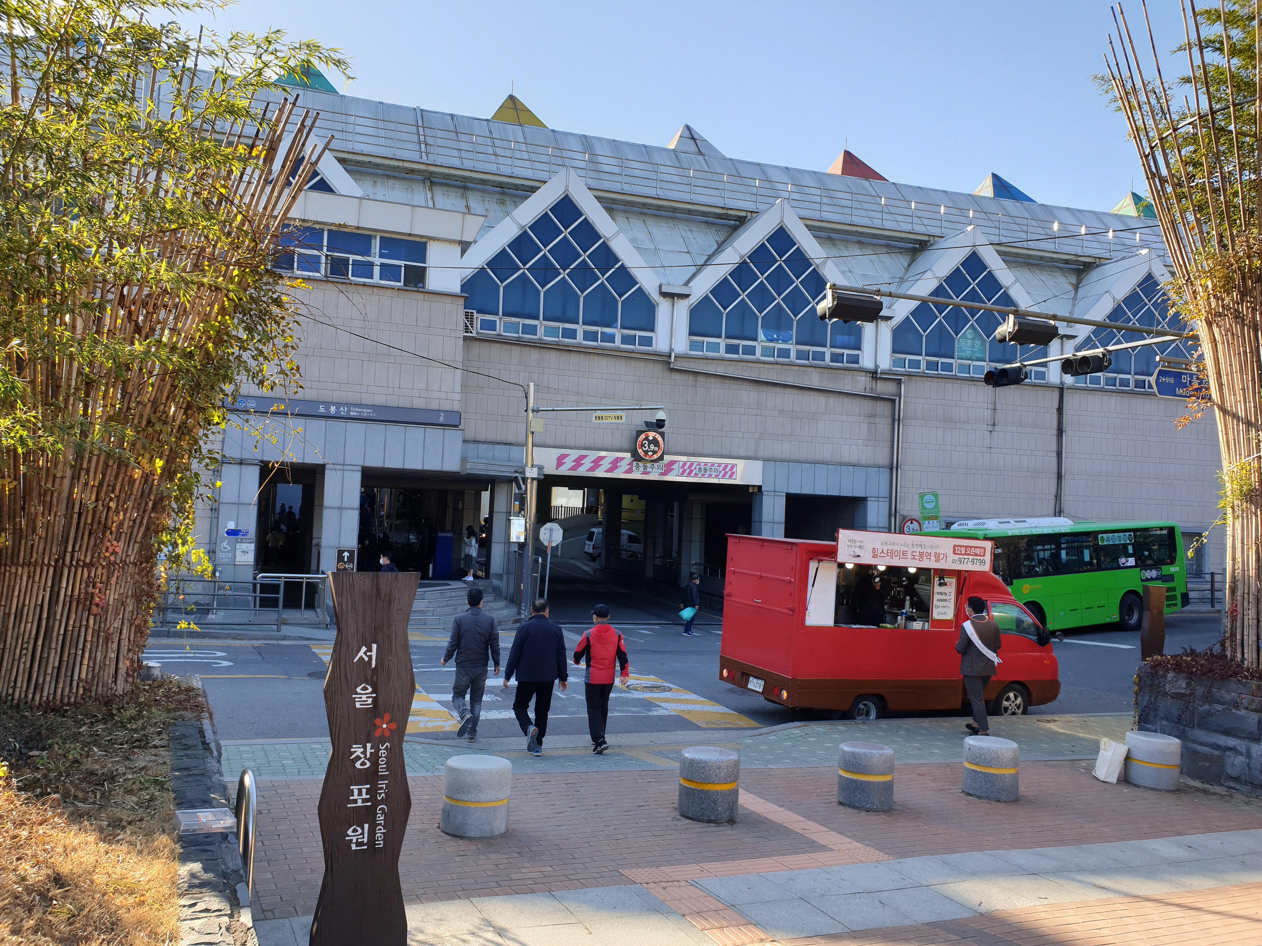 창포원 입구는 도봉산역에서 바로 접근이 가능하며, 멀리서 보면 도봉산역 출구와 창포원의 입구가 이어져 있는 것이 보입니다.