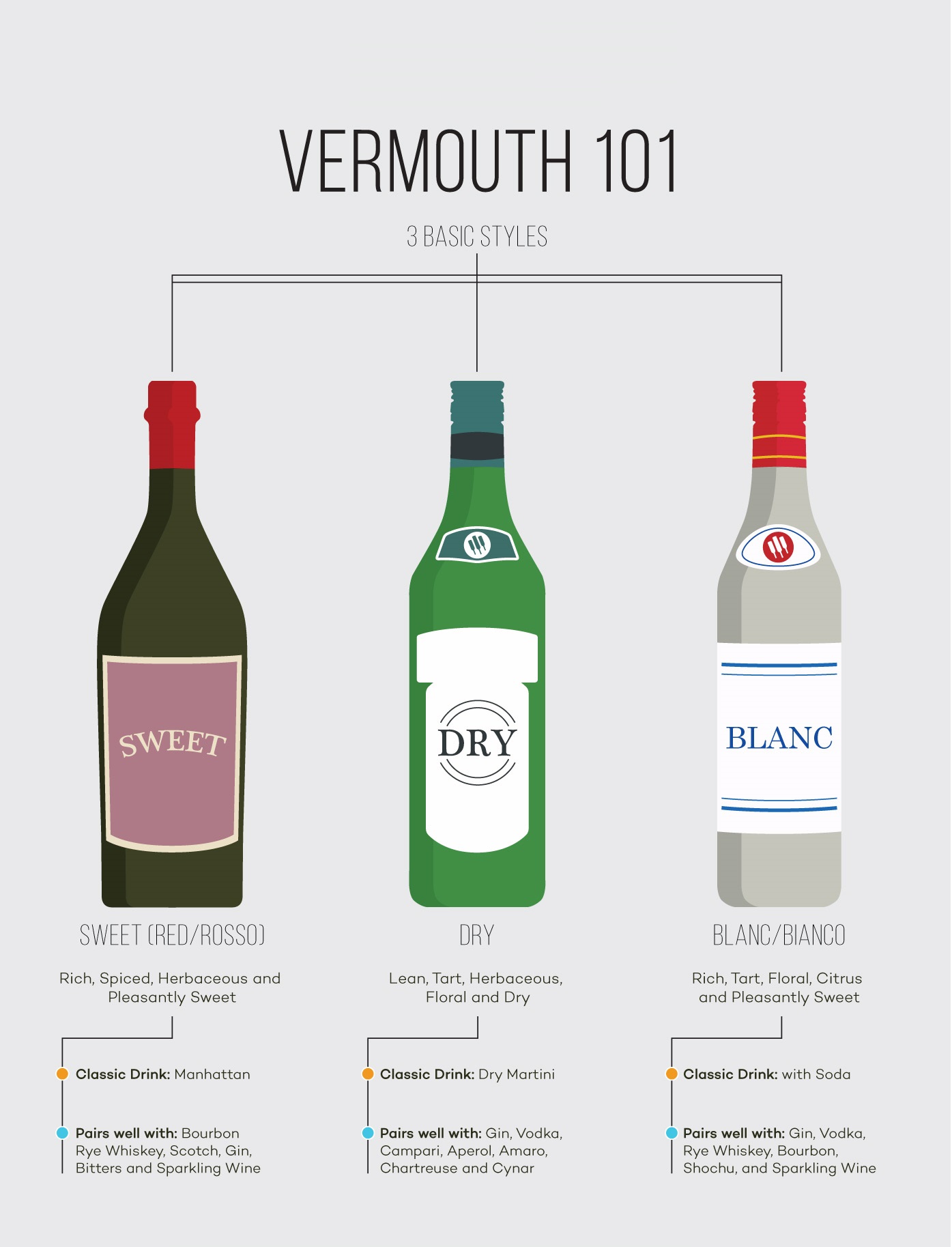 따라서 포도품종과 첨가하는 재료에 따라서 크게 스위트, 드라이, 블랑 세가지의 베르무트로 분류할 수 있으며 이중 드라이 베르무트가 칵테일의 재료로서 가장 많이 사용됩니다.