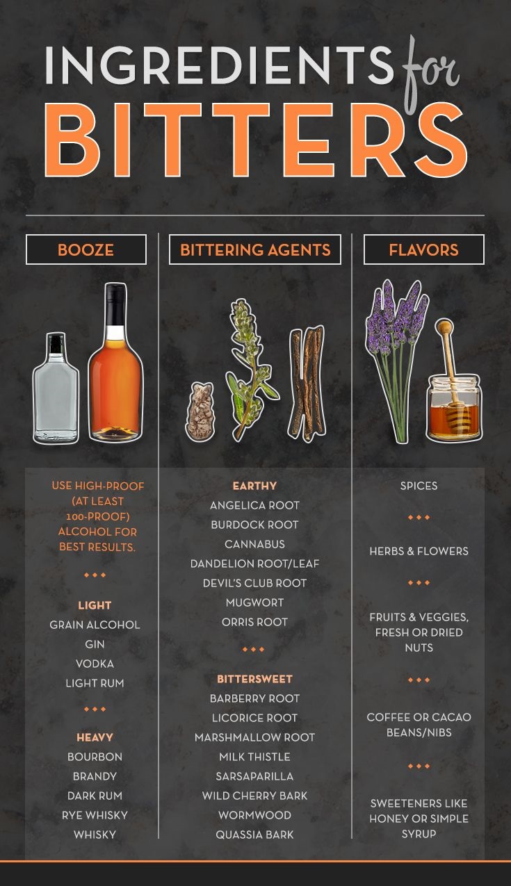 전세계적으로 다양한 종류의 비터스가 있으며 그중 가장 널리알려진 제품은 맨해튼 칵테일의 재료로 쓰이는 앙고스투라 비터스이고 특유의 디자인은 다른 회사들이 따라할 만큼 특색있는 비주얼을 나타냅니다.