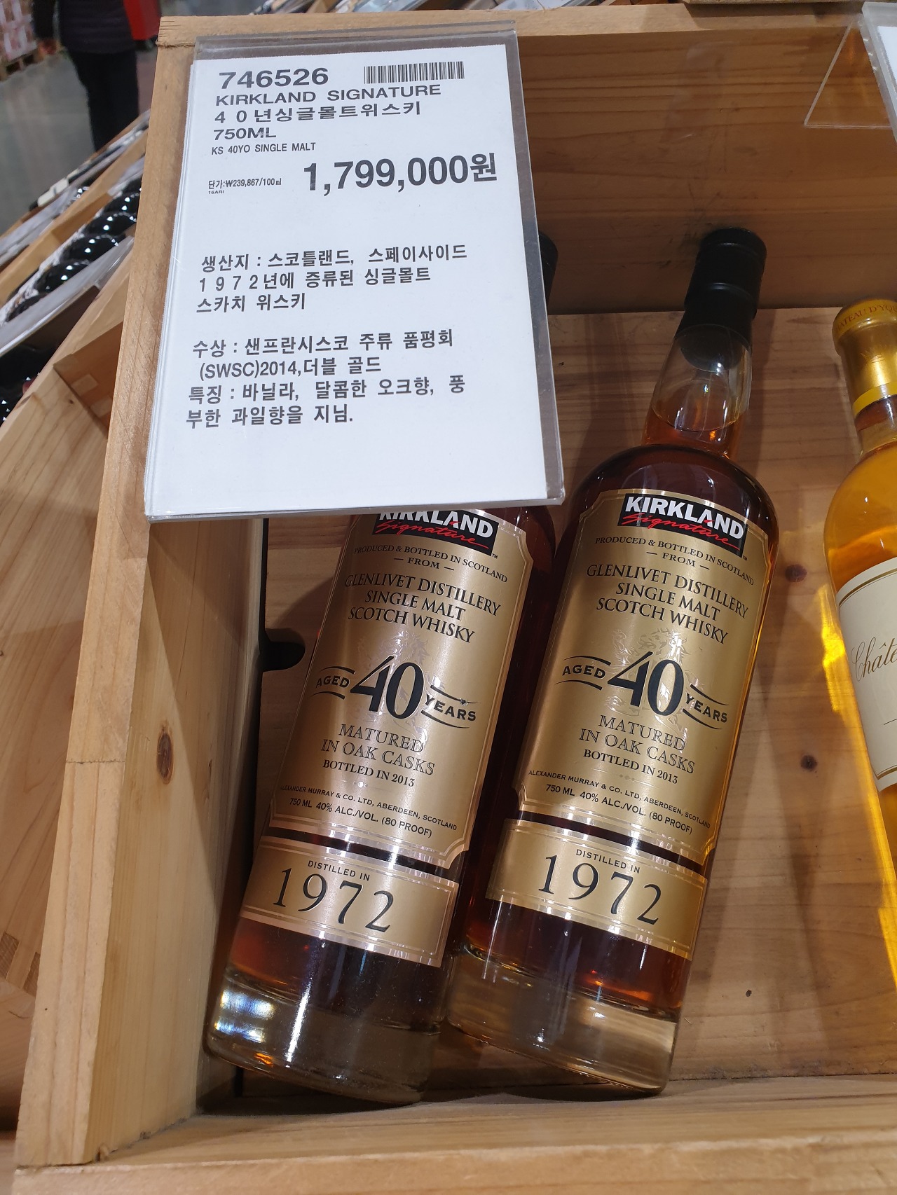 | 제품 | 커클랜드 싱글몰트 스카치위스키 40년 (글렌리벳) |