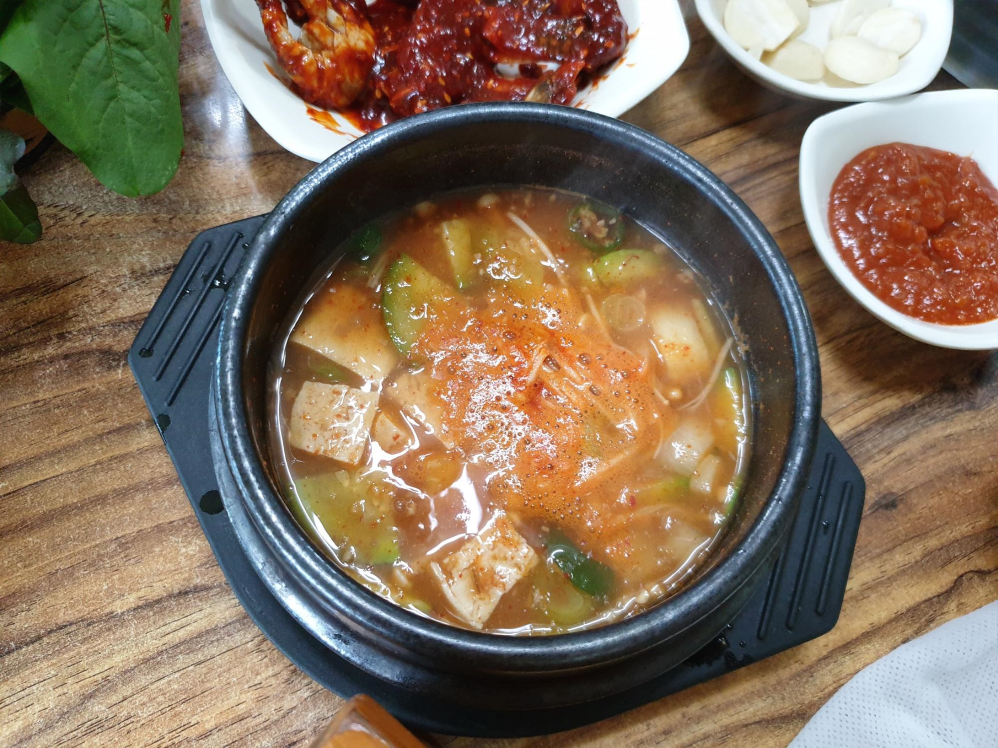 돼지갈비엔 된장찌개가 어울립니다. 된장찌개를 시켜서 돼지갈비와 함께 즐겨봅니다. 역시 돼지갈비의 양념맛에 된장베이스인 찌개는 조합이 좋습니다.