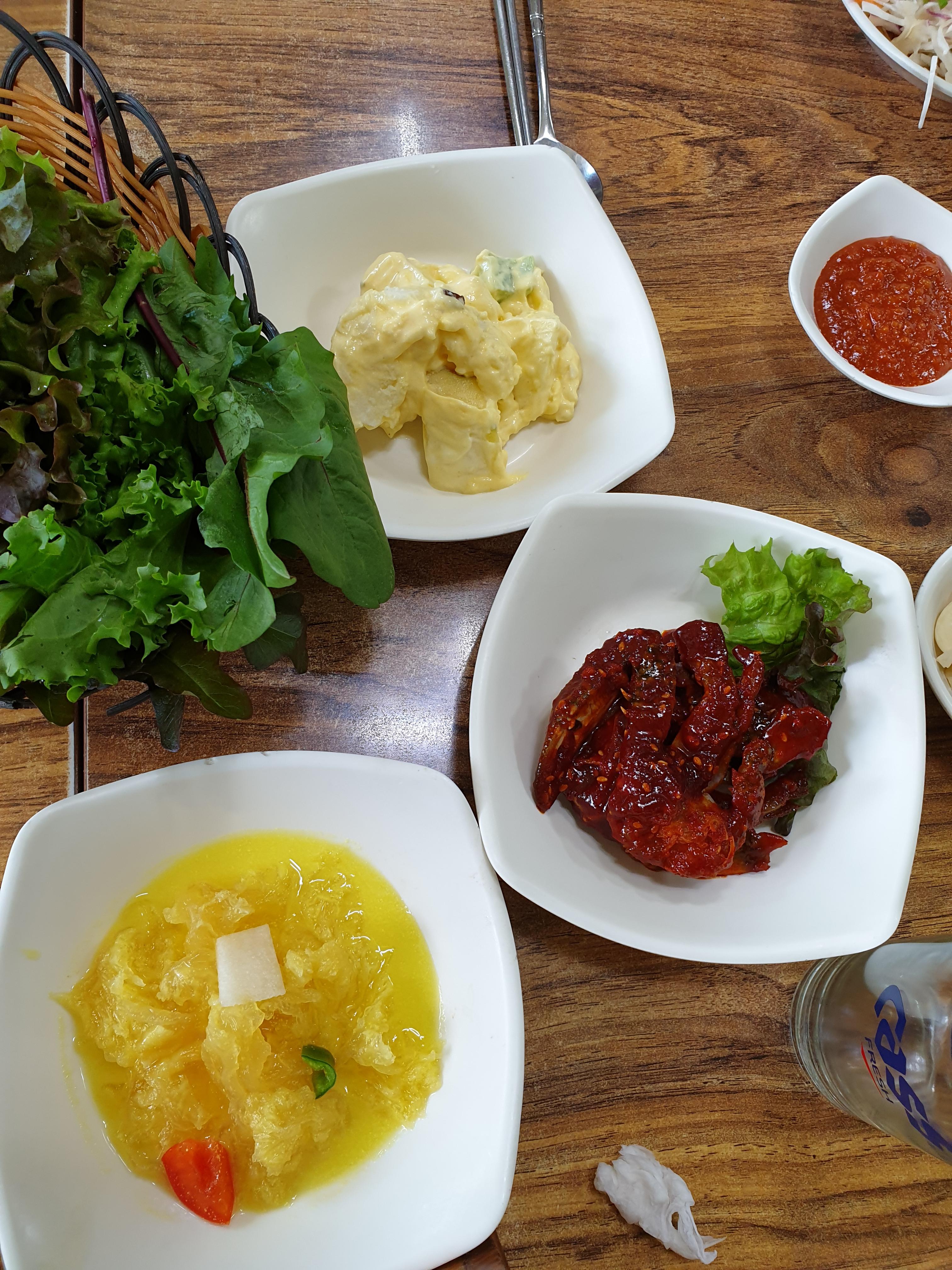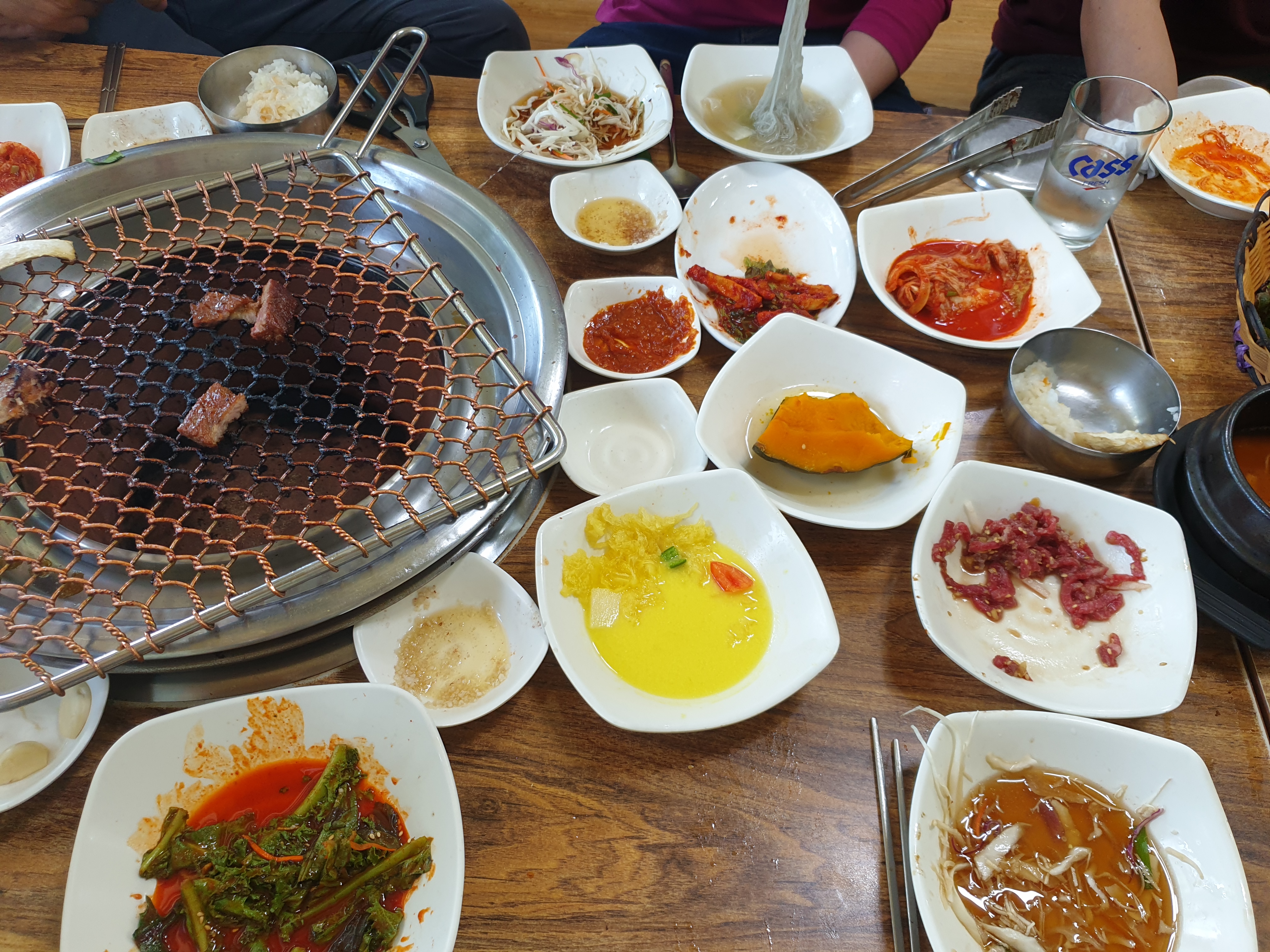 모든 고기와 반찬 후식까지 완료한 모습입니다. 정말 화창한 오후에 좋은사람들과 함께하기에 좋은 맛집인것 같습니다. 다음에로 라운딩을하면 여기로 와야겠습니다.