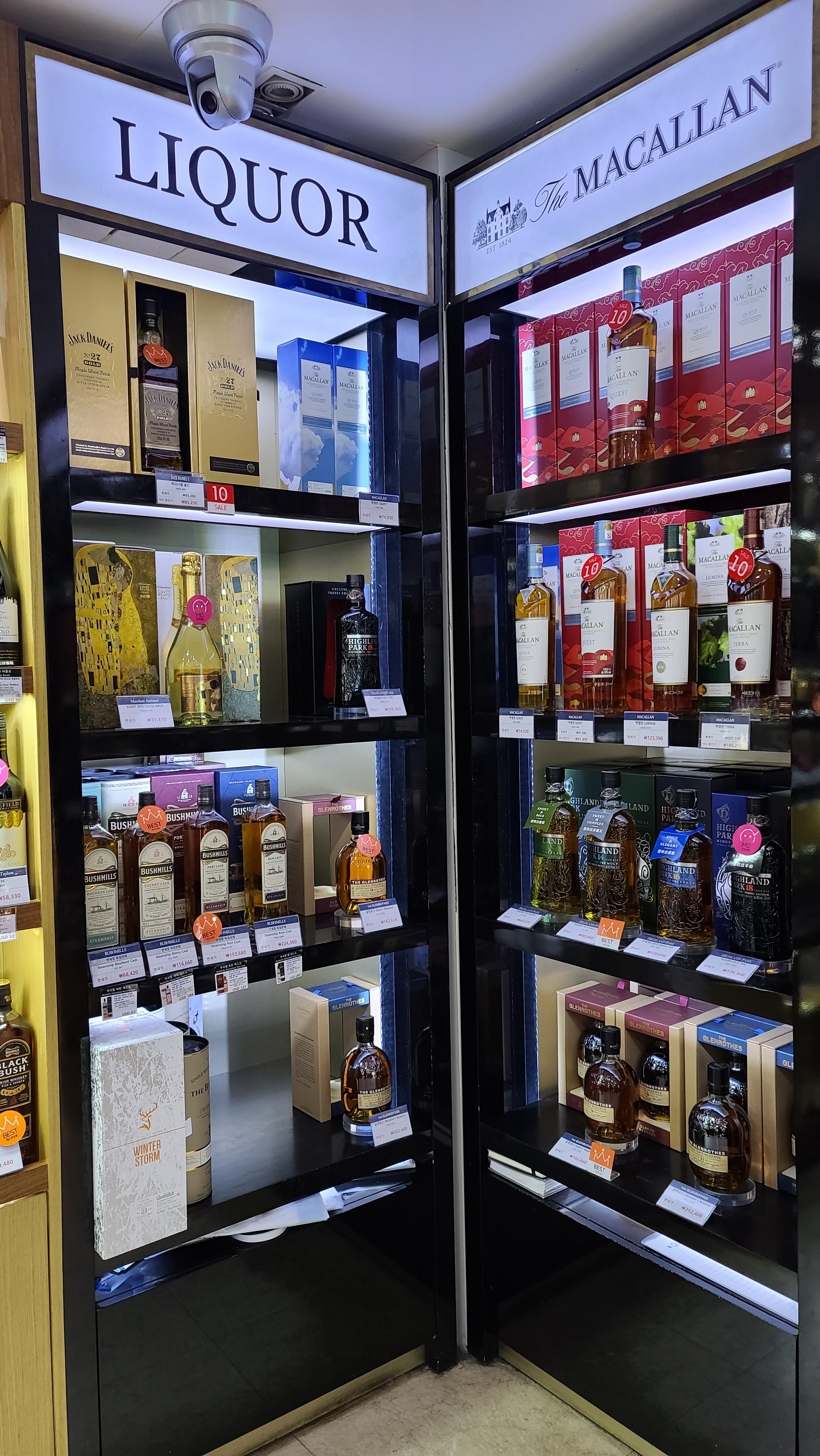 구석으로는 맥캘란, 하이랜드파크, 글렌로시스, 부쉬밀 등 다양한 제품이 보입니다. 맥켈란의 경우는 제품이 다양하지 않아 실망스러웠습니다.