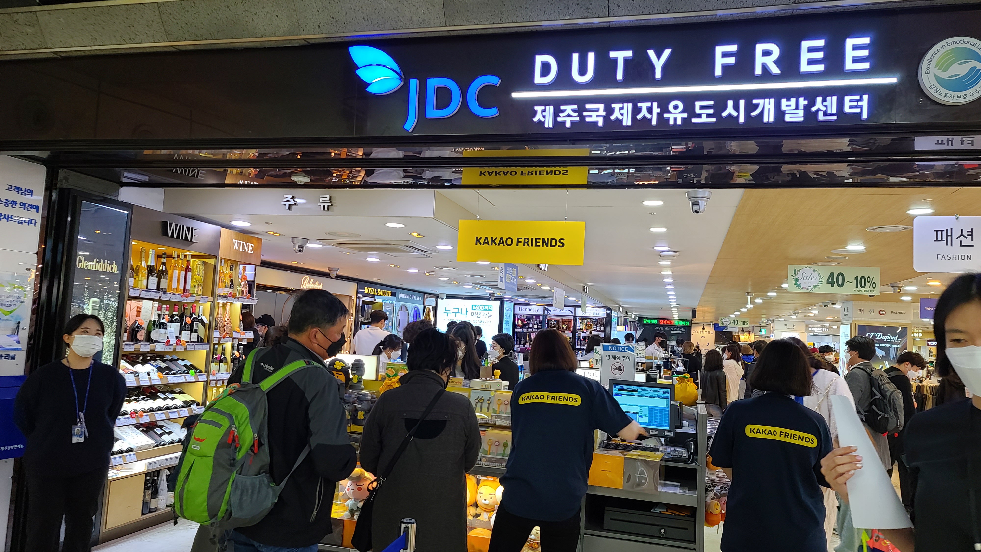 그중에서도 가장 할인률이 높아 사랑받는 주류코너에는 사람들이 북적이고 있습니다. 주류는 와인, 스피릿, 위스키 등 여러가지가 있지만 위스키와 꼬냑이 가장 세율이 높기때문에 할인률이 높아 인기가 많습니다.