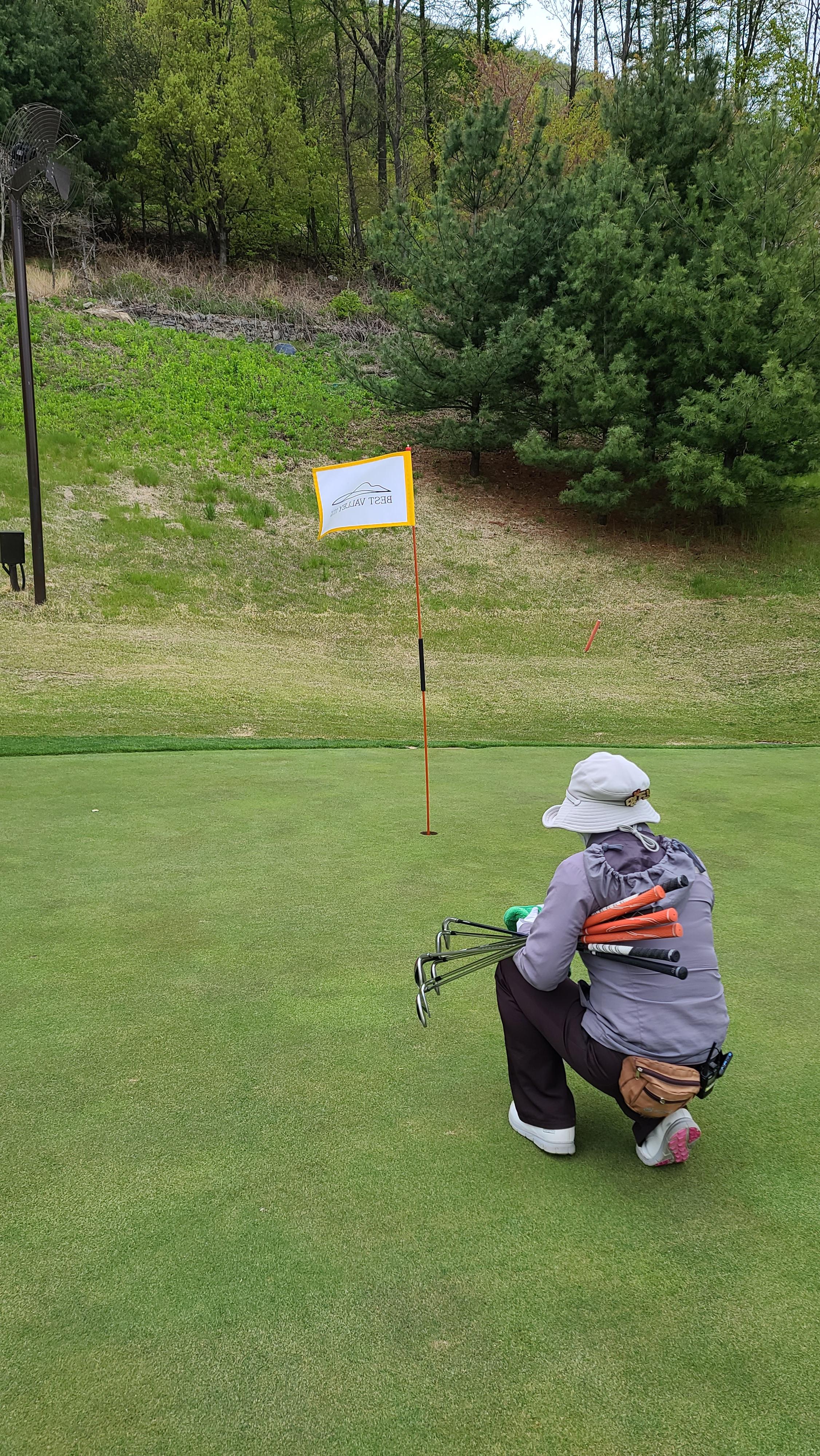 캐디분께서 버디라고 라이를 신중히 봐주시는 모습입니다. 버디를 하고 팁을 드려야겠다는 생각을 해봅니다.