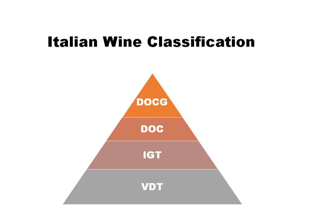 DOCG, DOC, IGT, VGT 순으로 품질이 높은 와인에 속하며, 지역과 품종에 따라 등급이 정해지는 특색을 가지고 있습니다.