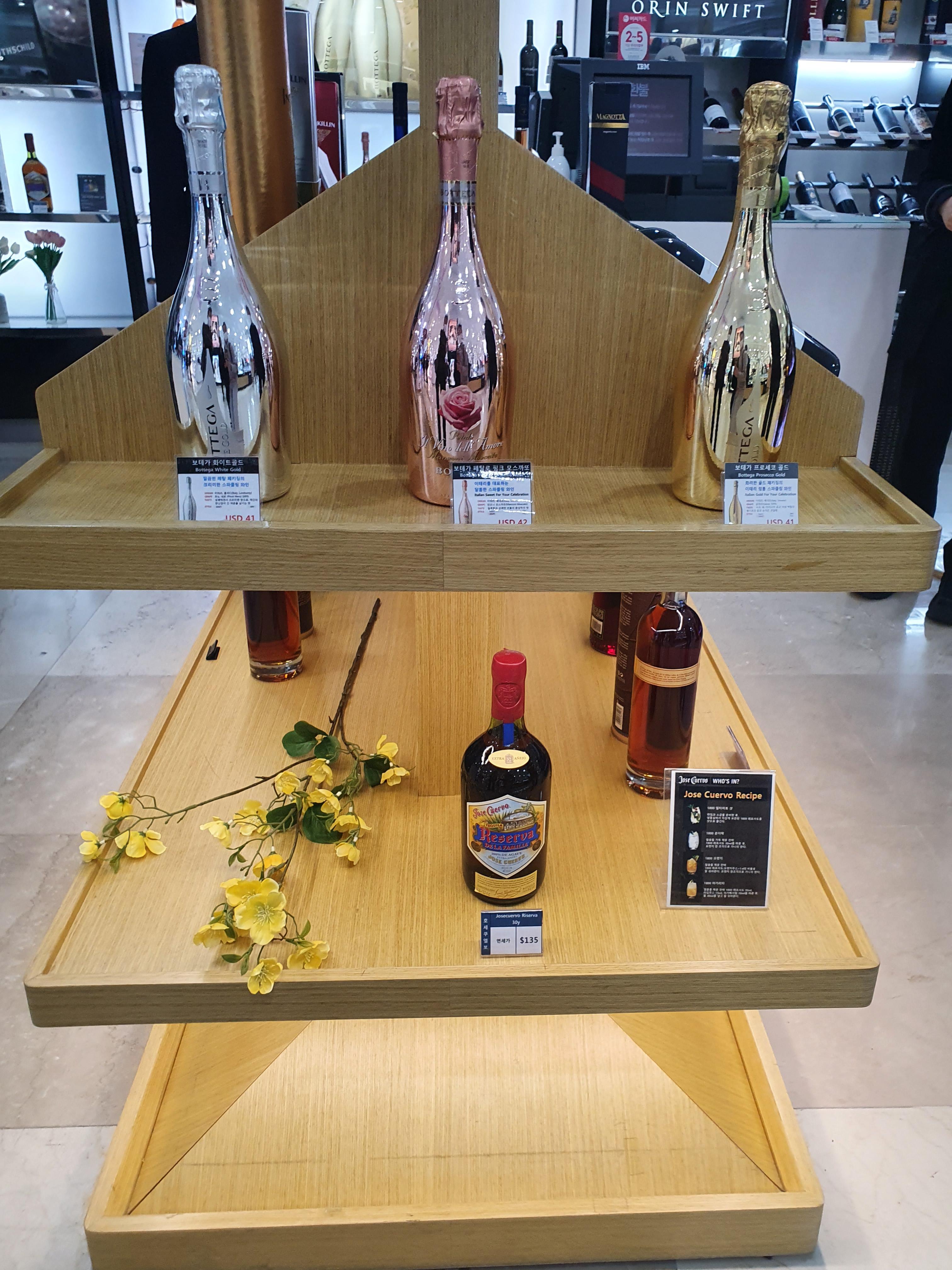와인들은 앞으로도 뒤로도 가장 많은 매대에 가장 많이 자리잡고 있어 역시 요즘 대세는 와인이구나 하는 것을 깨닫게 됩니다. 보테가 시리즈와 무똥까데는 인기제품인지 여기저기 중복해서 진열된 모습이 인상적입니다.