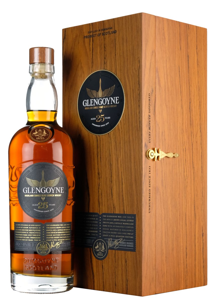 셰리캐스크에서 25년간 숙성시킨 글렌고인 25년 제품은 정규라인업 중에서 가장 하이엔드급의 제품이며 희소성으로 가격대가 매우 높습니다. 피트를 사용하지 않은 고숙성 위스키의 진가를 느낄수 있는 제품입니다.