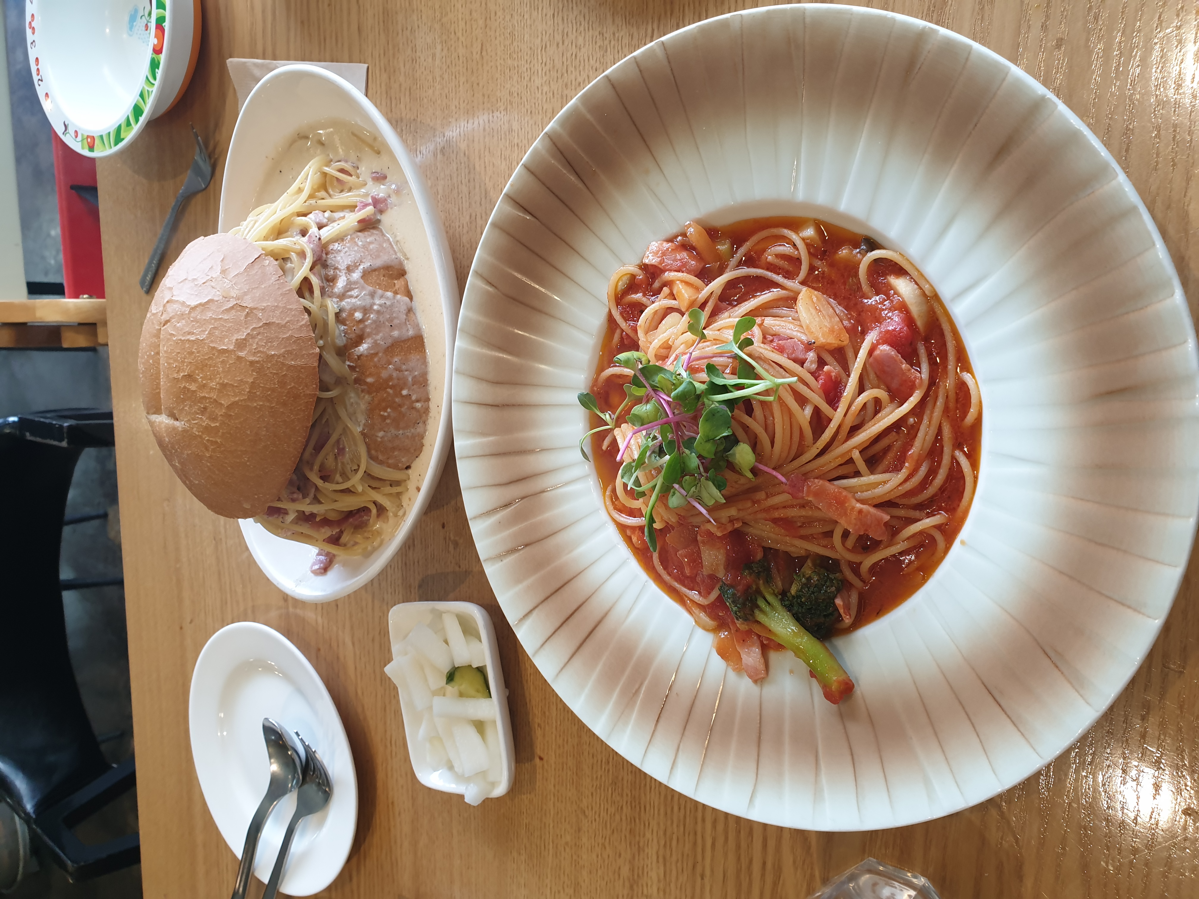 뒤를 이어 크림스파게띠 빠네도 나왔네요.