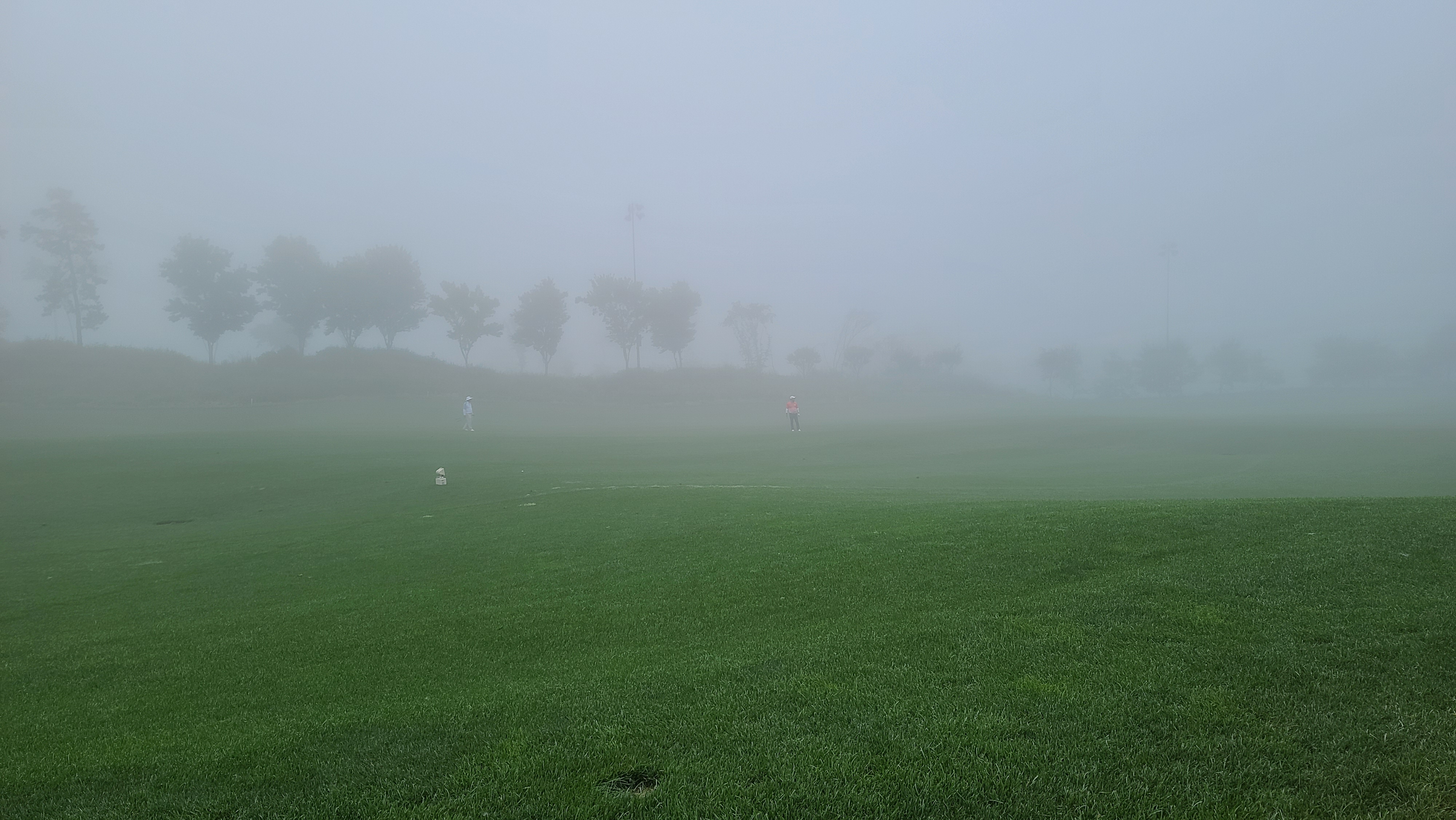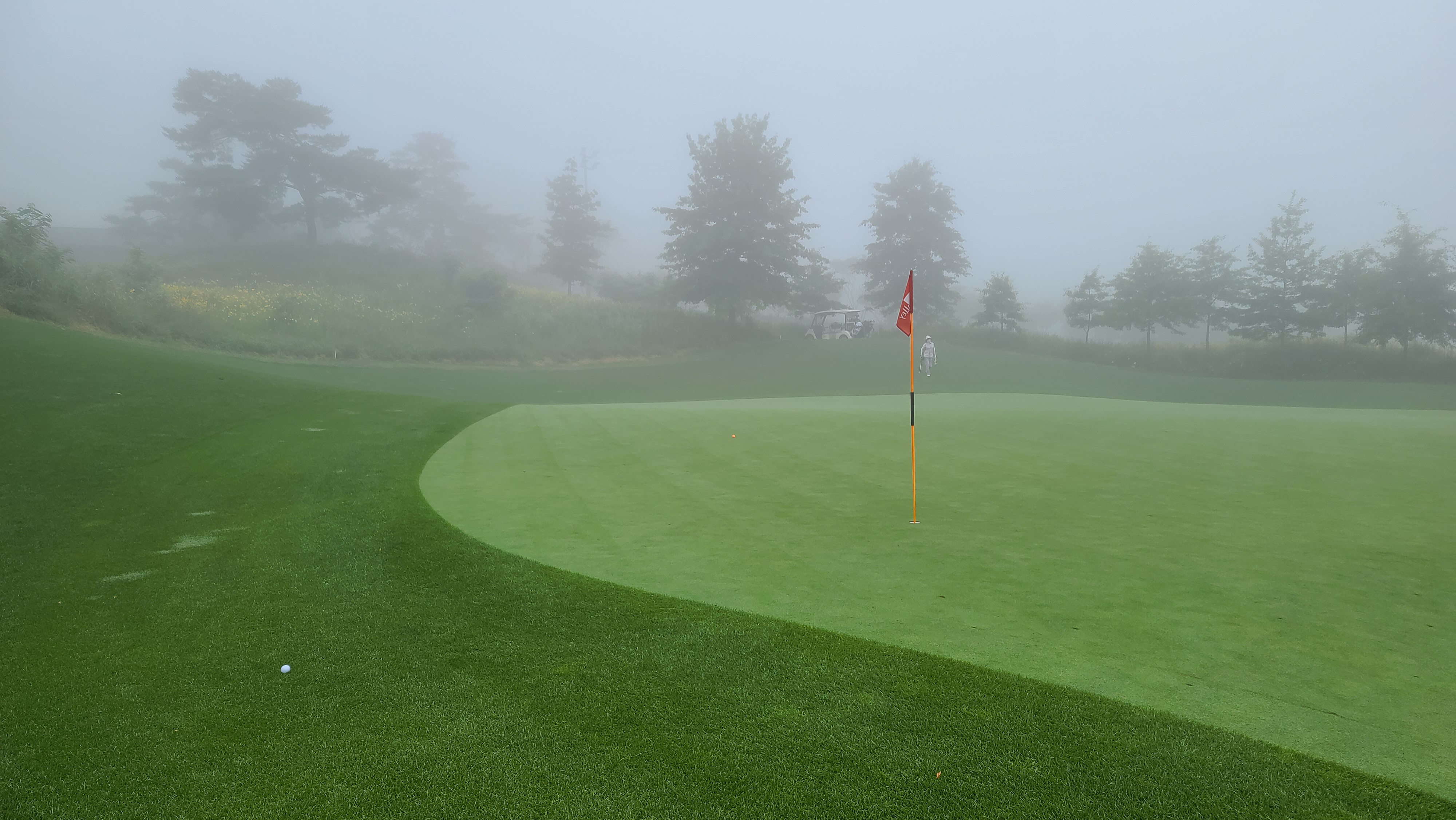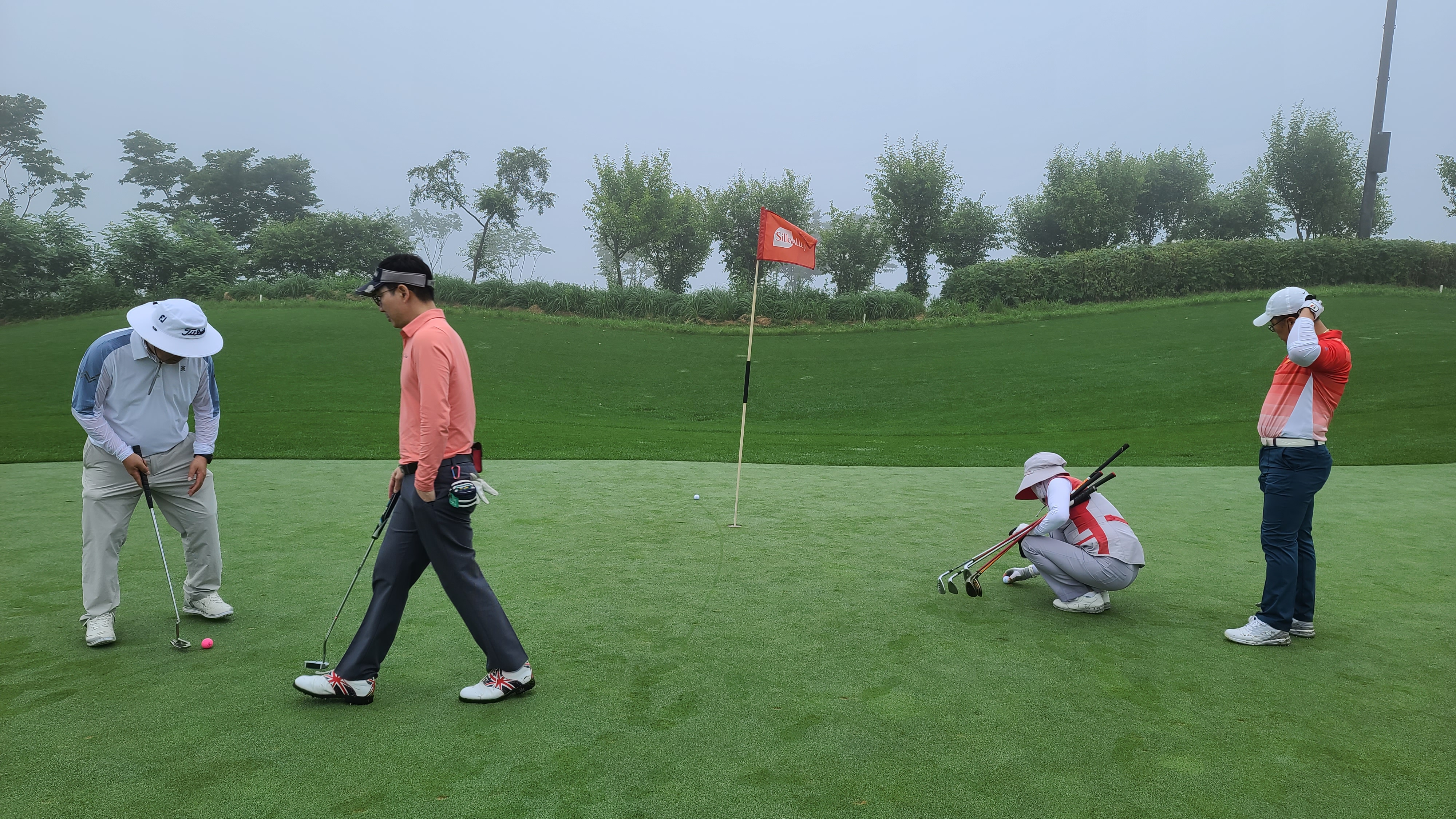 안개속에서 플레이를 하니 핀이 잘보이지 않아 심리적으로 힘이 들어가고 계속해서 런이 길게 발생합니다. 하지만 파트너 세분은 모두 5m 안에서 퍼팅을 놓고 격돌하고 있는 모습을 담아봅니다. 안개속에서도 파트너분들의 실력은 대단하게 느껴집니다.