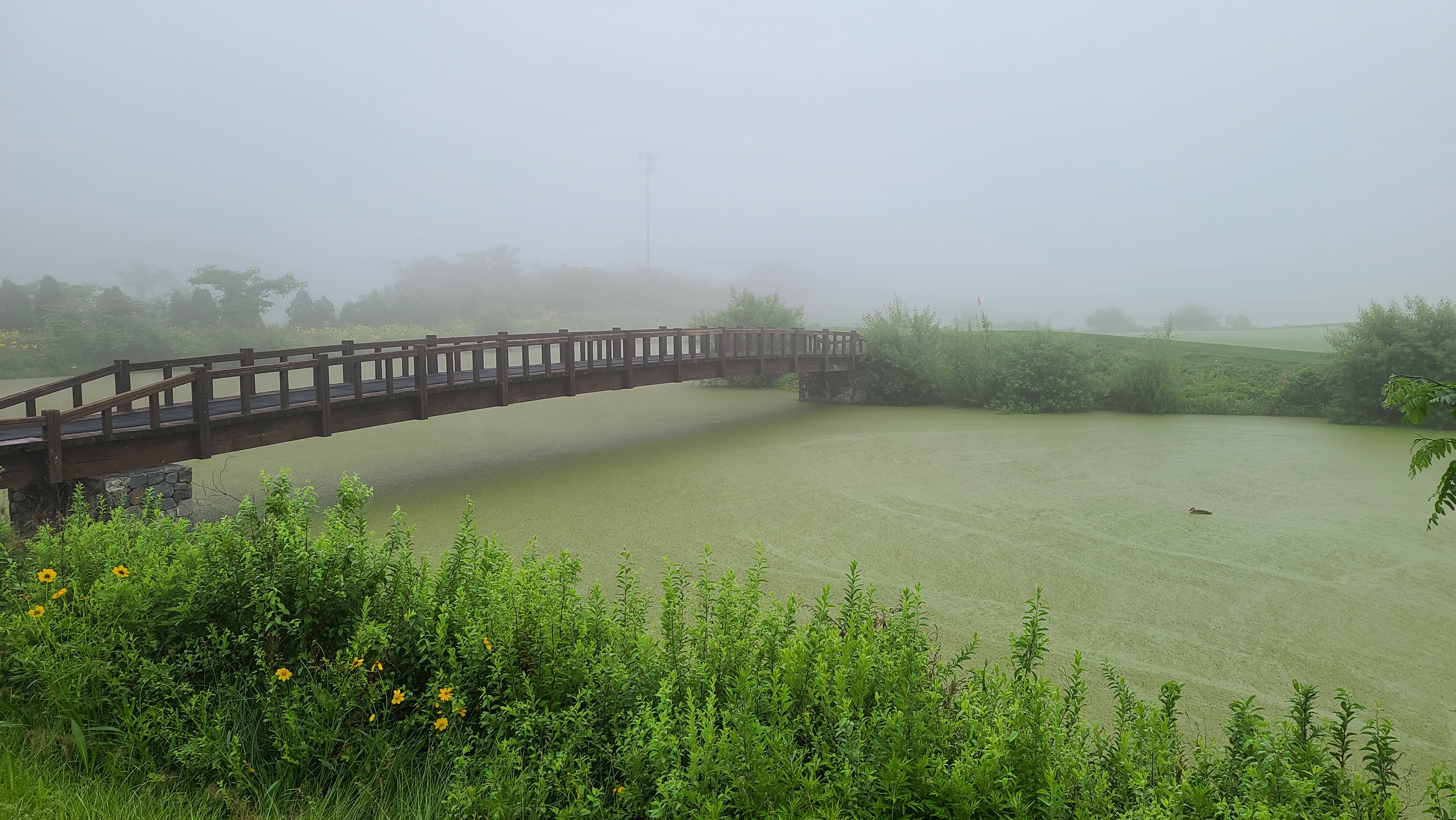 이천실크밸리 코스는 중간중간 못으로 이루어진 해저드가 참으로 많이 비치되어 있습니다. 멋진풍경과 함께 경치를 감상하기도 좋은 골프장이지만 이것 때문에 안개가 더욱 심한것은 아닌지 생각이 듭니다. 전반이 끝나갈때 까지 안개는 걷히지 않을것으로 보입니다.