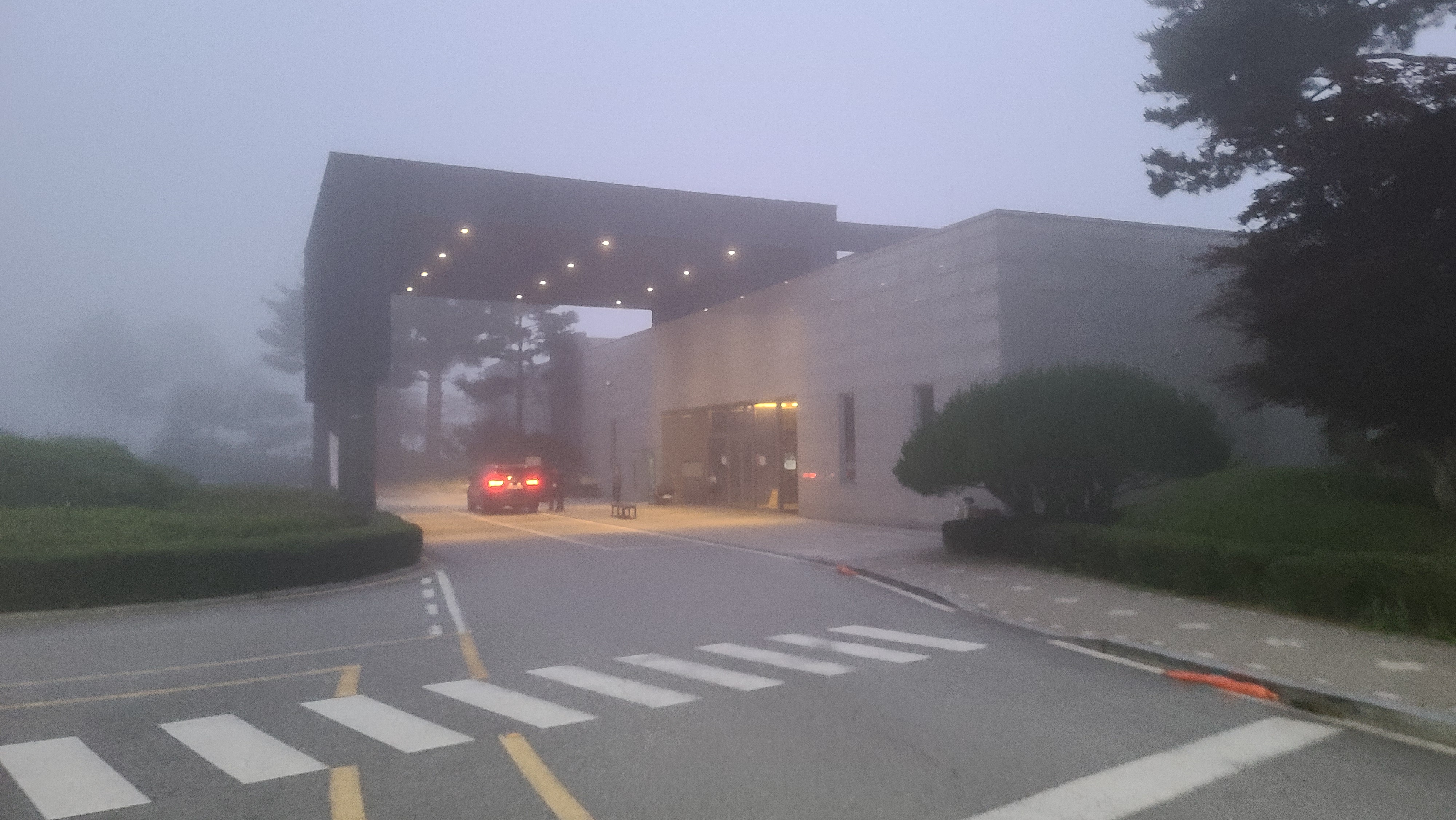 새벽 일찍 도착해서 짐을 내린후 클럽하우스와 주차장을 담아보니 자욱한 안개와 함께 텅 비어있는것이 음산한 분위기를 자아냅니다. 너무 일찍도착해서 텅빈 모습을 보니 상당히 이채롭습니다.