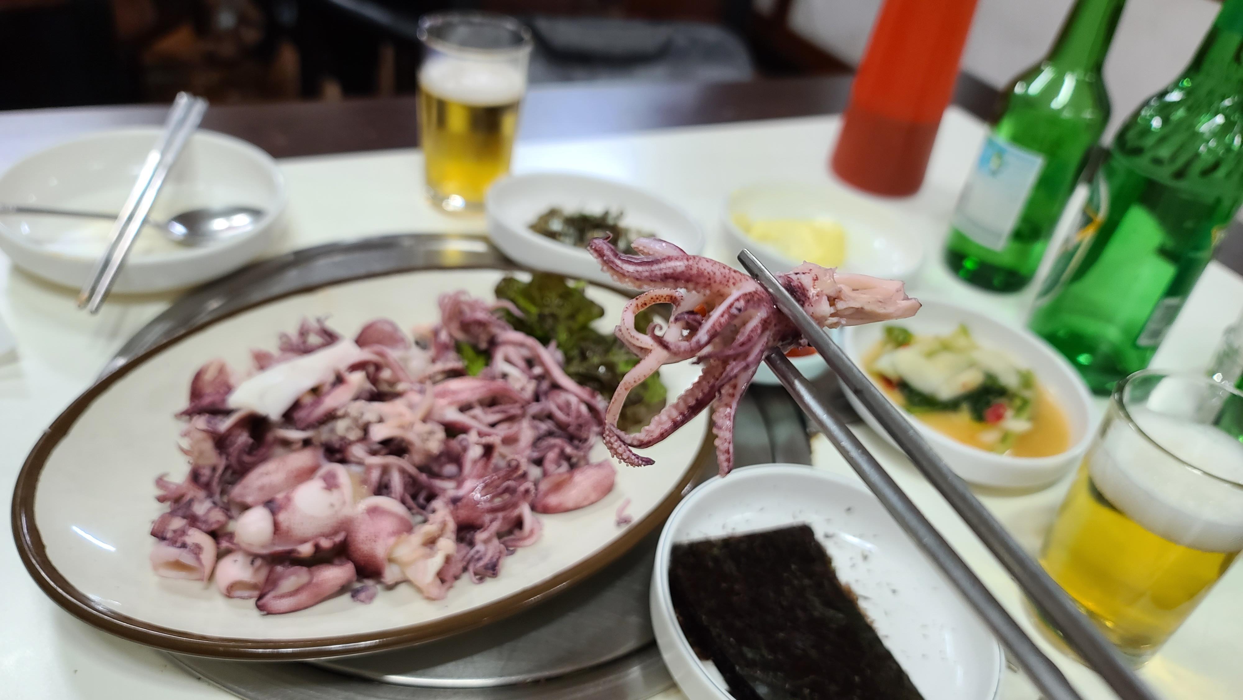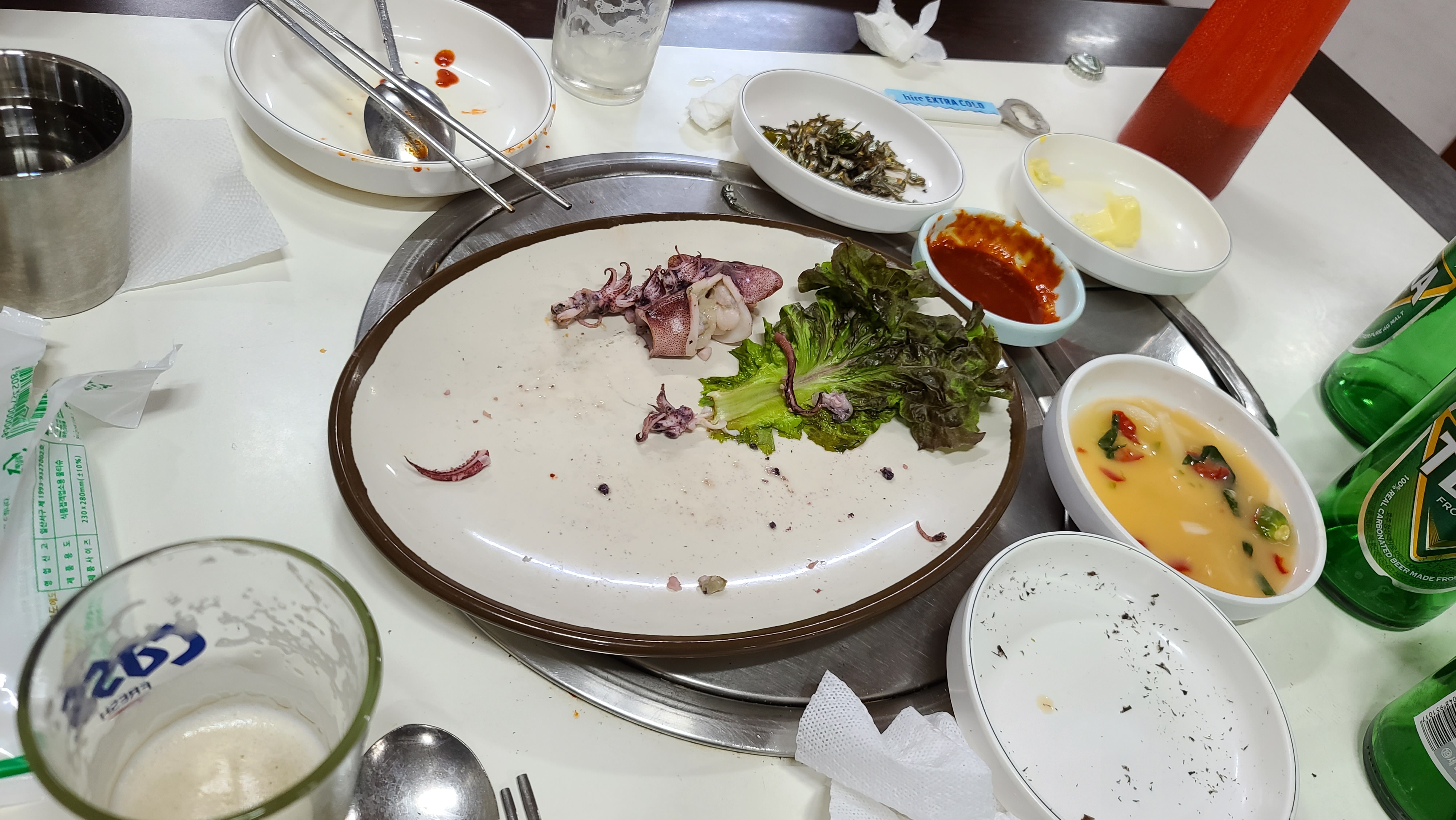한치와 꼴뚜기를 비우고 즐거운 마음으로 김과 반찬에 맥주로 마무리를 하고 자리를 마칩니다. 횟집 제철 사이드 메뉴의 위력을 느끼며 다음에는 꼭 생물을 먹어봐야겠다는 생각을 하고 즐거운 자리를 마무리합니다.