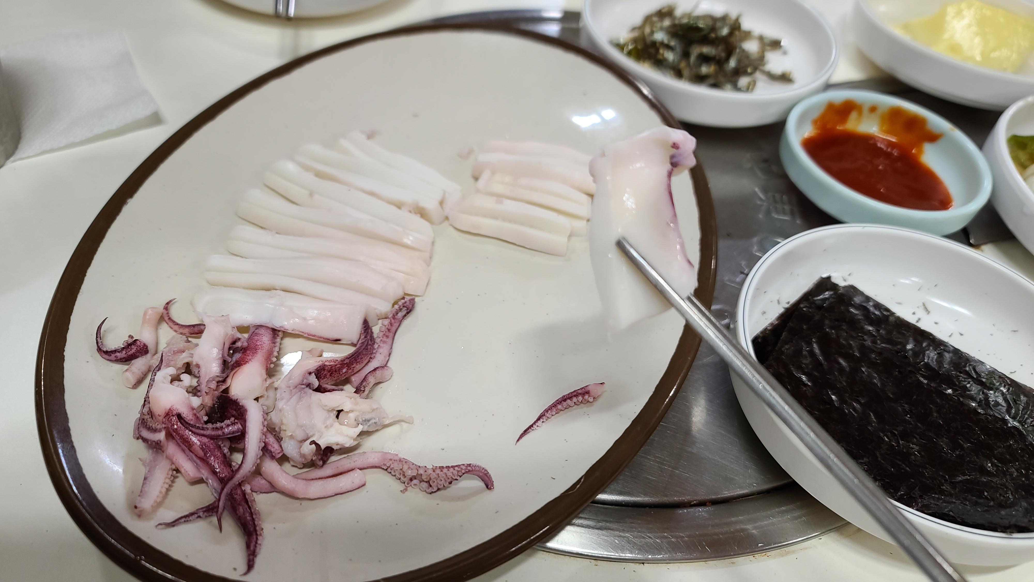한치를 먹고 요번에는 꼴뚜기 숙회를 주문해봅니다. 꼴뚜기 숙회또한 야들야들한 식감에 꼴뚜기의 맛의 성분이 입안에서 폭발합니다. 숙회가 이렇게 맛있다니 감탄사가 쏟아져 나옵니다.