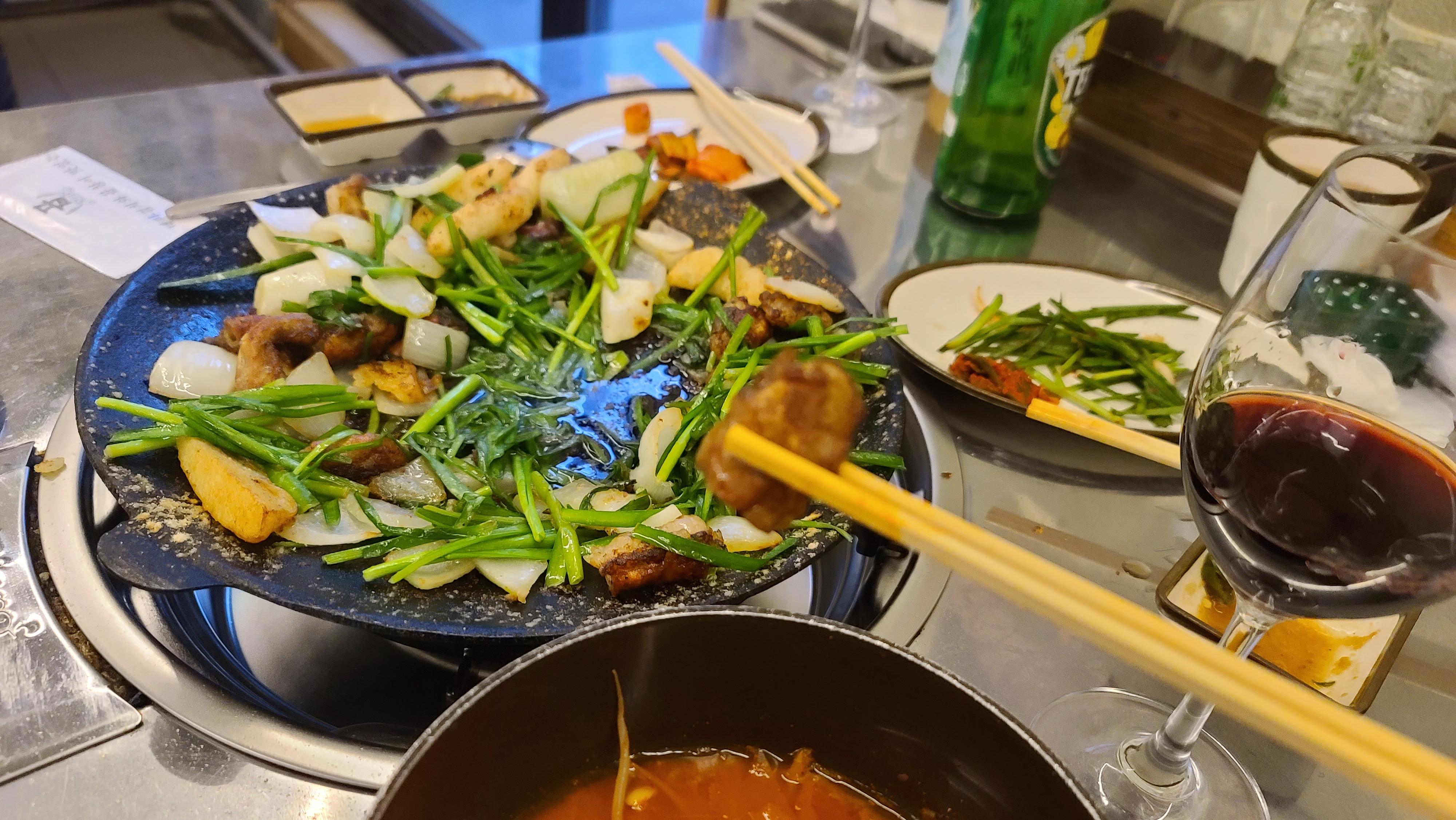 프랑스 와인과 한국 곱창의 조화로움을 담아봅니다. 상당히 이채로운 조합같지만 궁합적으로 매우 좋습니다.