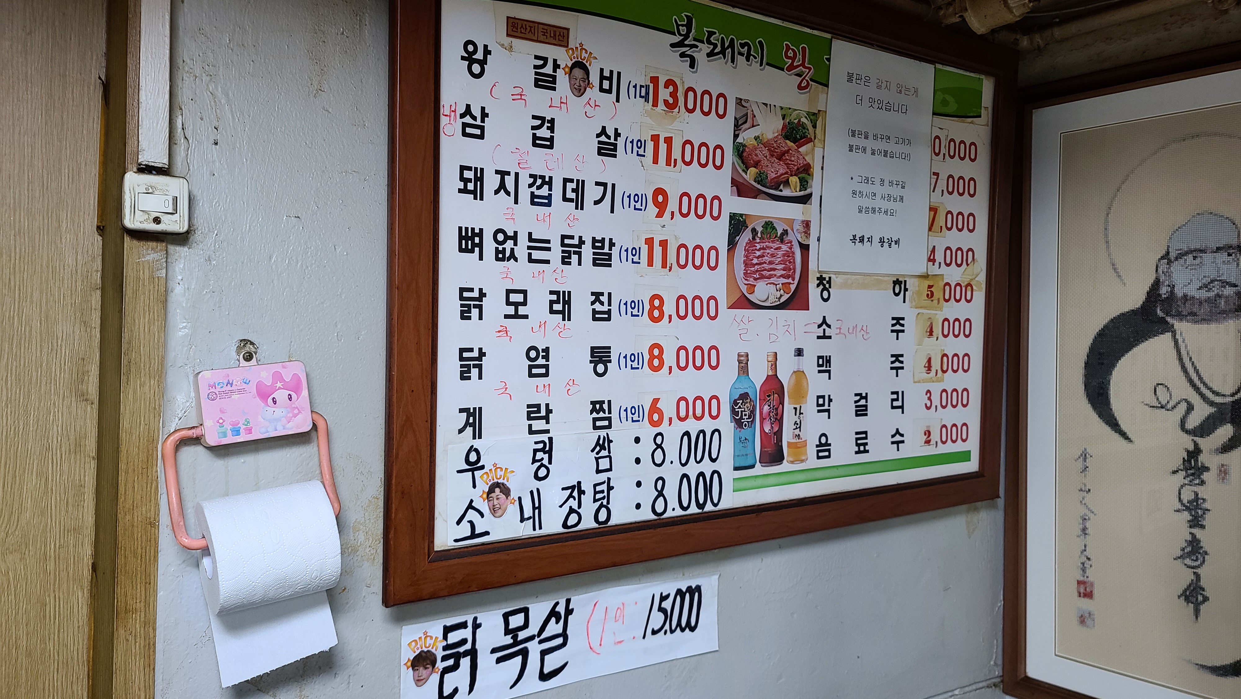 식당 내부는 매우 허름하고 좁은 구조로 되어 있으며 토속적인 분위기가 물신 풍기는 곳입니다. 바깥쪽에 자리를 잡기로 하고 메뉴판을 살펴봅니다.