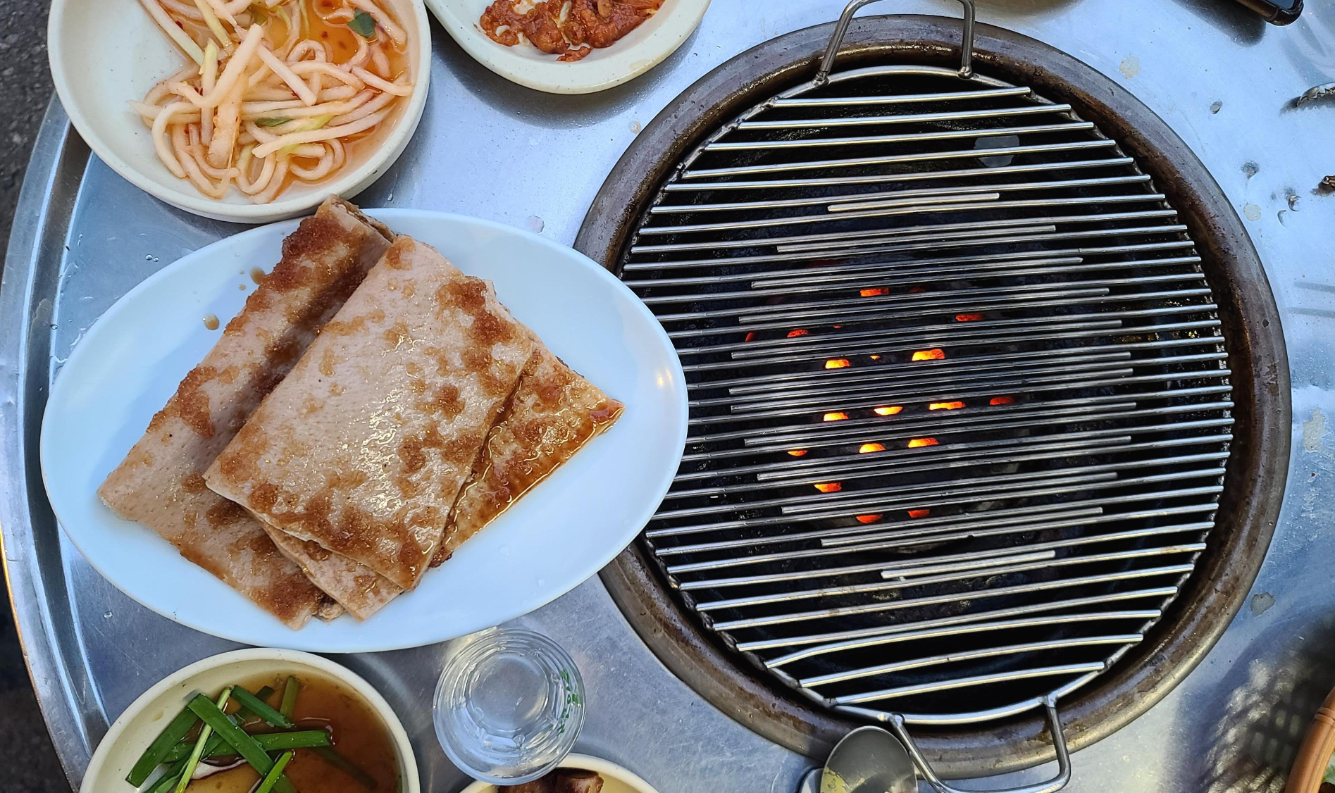조금 기다리자 껍데기가 아주 알맞게 구워졌습니다. 겉은바삭 속은 촉촉 겉바속촉의 비주얼이 군침을 돌게 만듭니다.