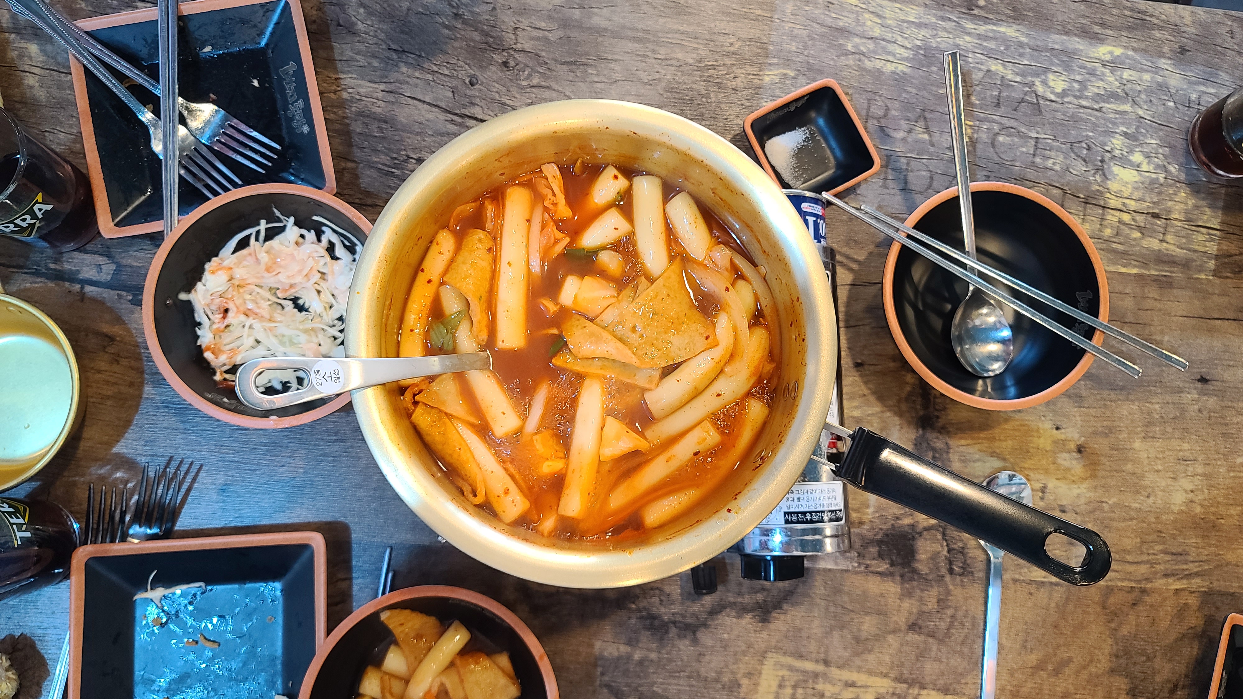 닭똥집튀김과 어울리는 국물떡볶이도 같이 주문해봅니다. 국물떡볶이는 약간 칼칼한 맛이 일품이며 닭똥집튀김과 맛의 궁합이 매우 뛰어납니다. 정말이지 술한잔하기 좋은 장소인것 같습니다.