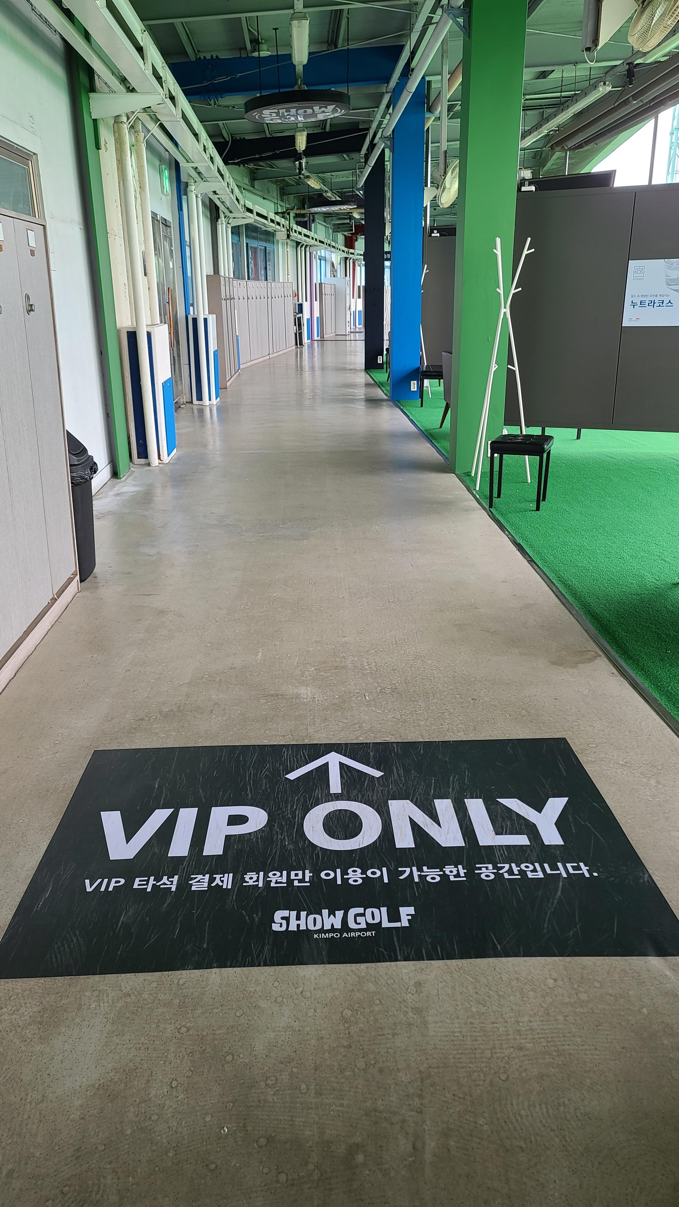 후문에서 넓은 타석을 보고 들어가면 골프백을 올려놓는 레일이 설치되어 있습니다.