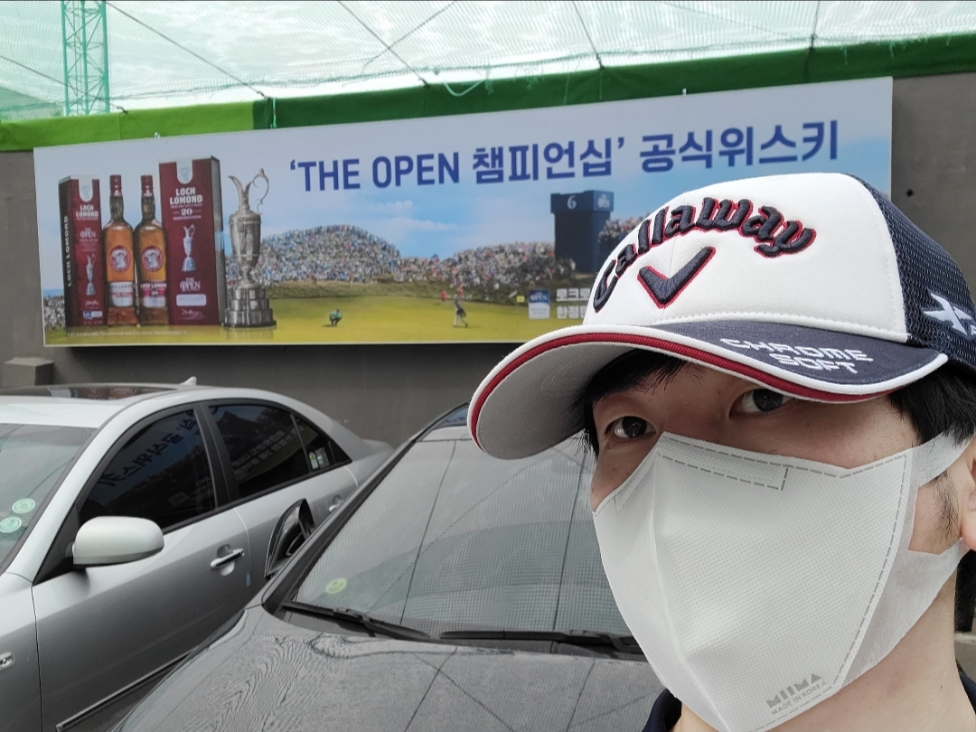 원활한 주차를 위하여 후문쪽에 차를 세우러 갑니다. 이른 아침이지만 차들이 가득 들어차있는게 우리나라의 골프열정을 보여주는것 같습니다. 안쪽에 차를 세우고 나니 THE OPEN 골프위스키 광고가 보입니다.