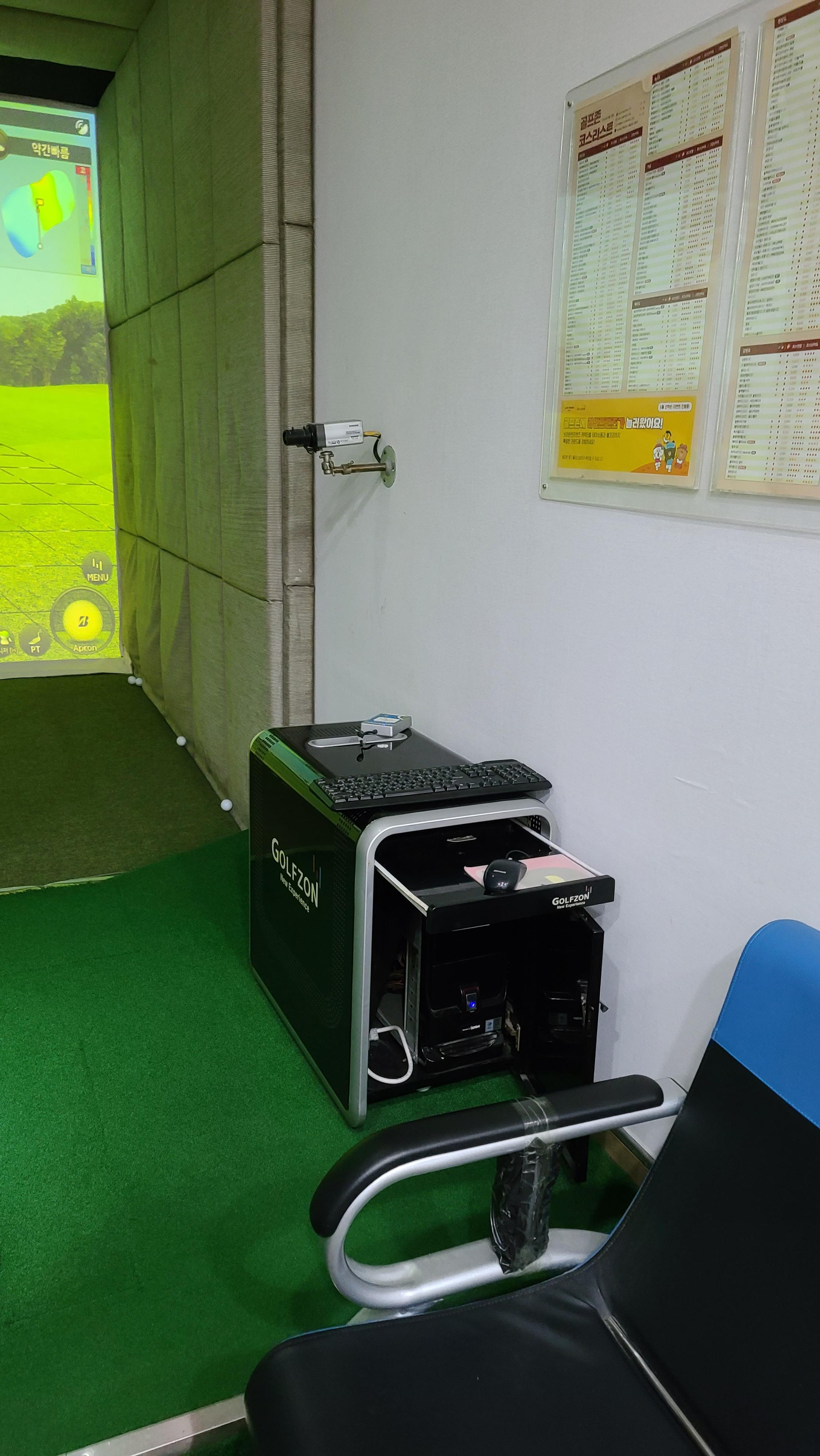 방으로 들어가서 주변을 살펴봅니다. 골프존 시스템에 바닥은 일자형인 비전플러스이며 카메라가 돌출되어 있는게 상당히 신기해보입니다.