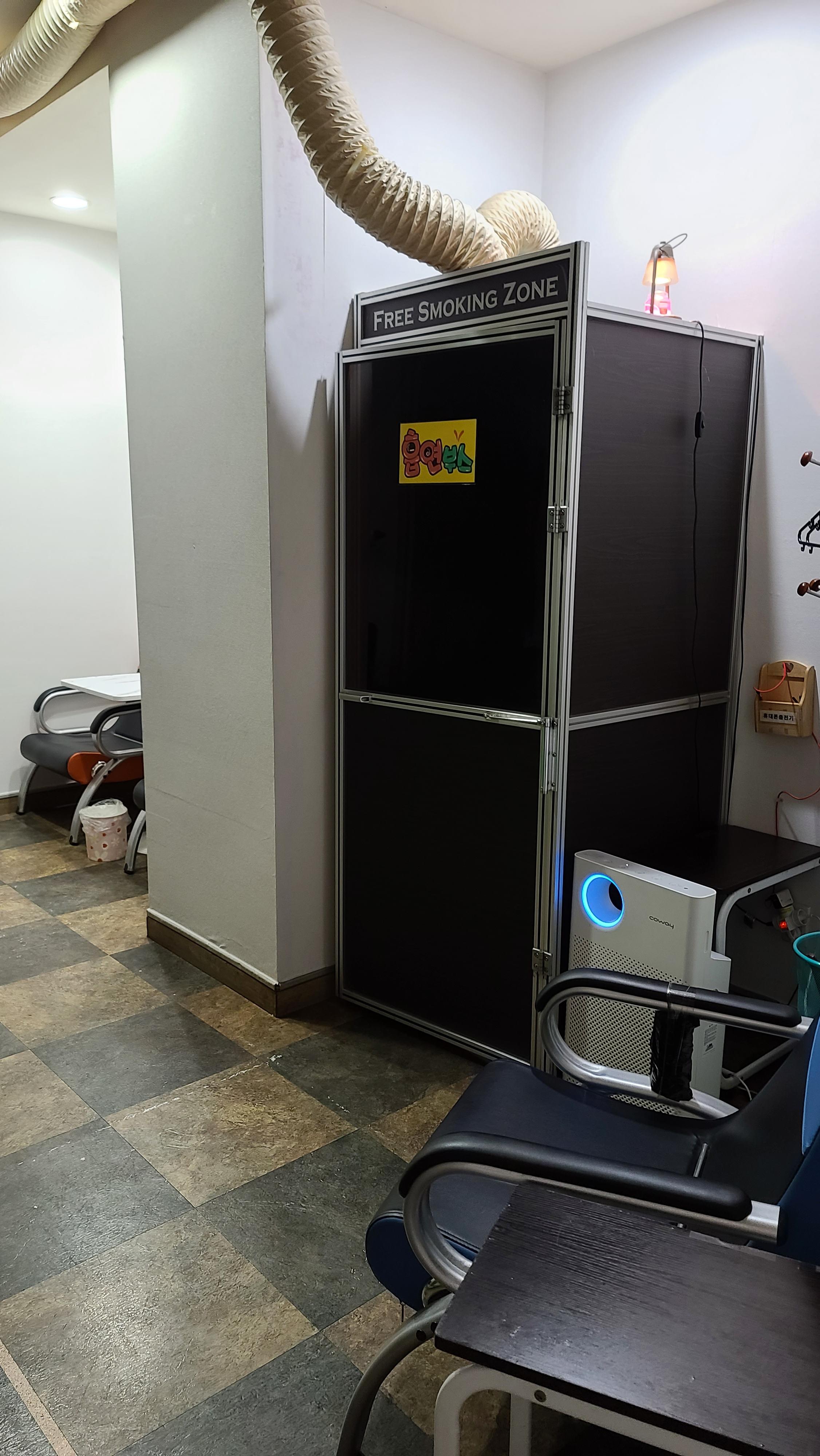 시스템은 키오스크가 아닌 컴퓨터로 관리되는 마우스와 키보드로 컨트롤을 하여야합니다. 뒤쪽으로는 흡연부스가 따로 설치되어 있는것이 이채롭습니다.